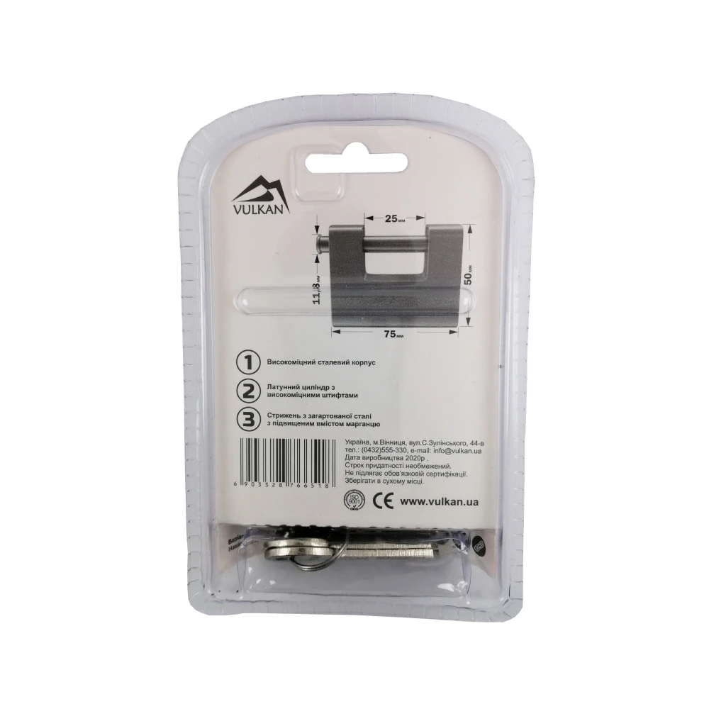 Навісний замок Vulkan BL7375 має стандартний розмір 75 мм.
