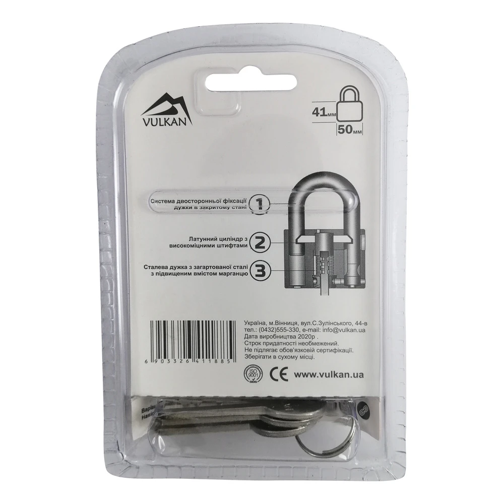 Навісний замок Vulkan BX0150 PVC має стандартний розмір 50 мм.
