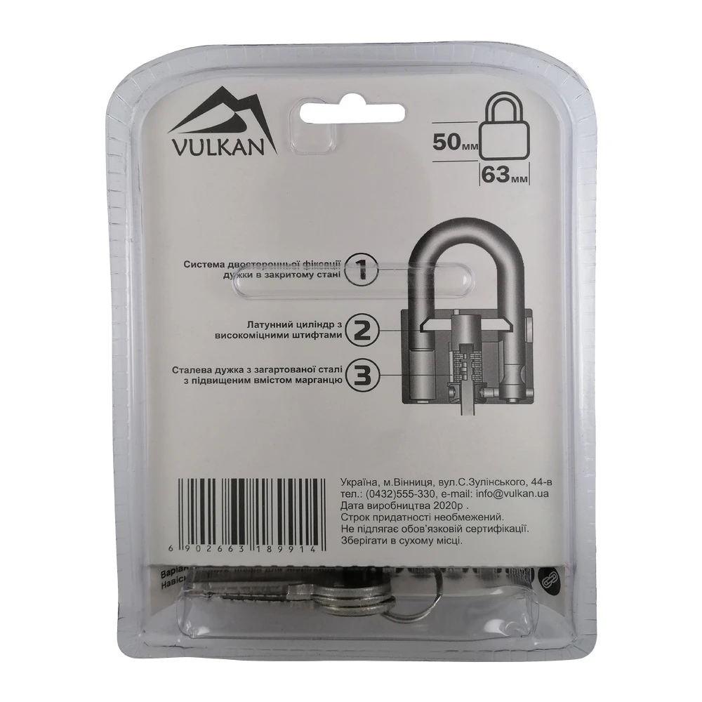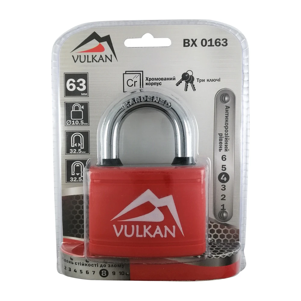 Навісний замок Vulkan BX0163 має стандартний розмір 63 мм.