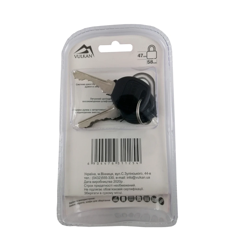 Vulkan - власна торгова марка ТД “”. На етапі розробки кожна модель навісних замків Vulkan проходила випробування в Україні в реальних умовах використання. Тому саме інженери Vulkan вносили необхідні зміни в конструкцію замків, удосконалюючи її та забезпечуючи триваліший термін експлуатації за будь-яких умов. Саме такою модернізацією є додаткове захисне покриття замку: для уникнення пошкоджень поверхні самого замикального пристроя та дверей замки оснащуються додатковим пластиковим покриттям і гумовим чохлом.