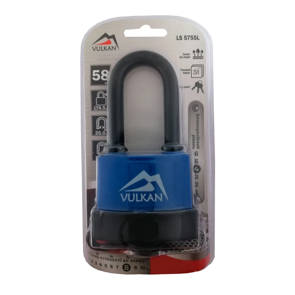 Опис навісного замка Vulkan LS5755L із захистом від вологи 55 мм