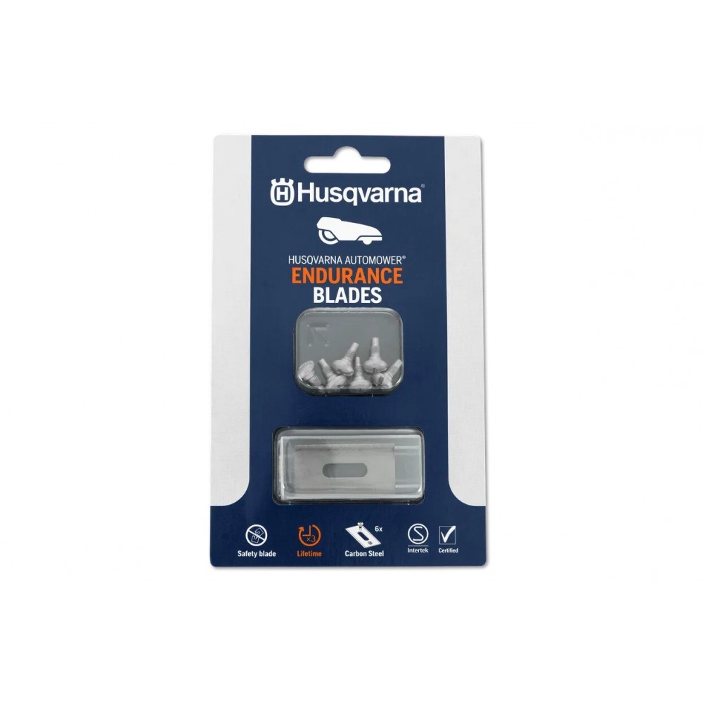 Husqvarna (5950844-01) - ріжучі елементи в кількості 6 штук, що передбачають необхідність встановлення на роботизовані газонокосарки. Аксесуари виконані з міцної та швидкорізальної сталі, мають антикорозійне покриття, характеризуються особливим форматом з наявністю ріжучих кромок на всіх чотирьох сторонах. Постачаються разом з кріпильними елементами.