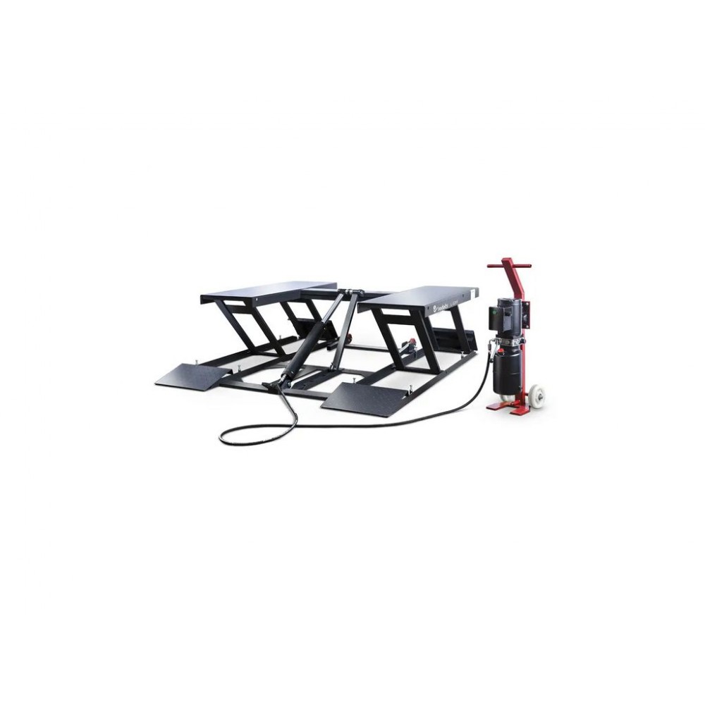 Підйом і опускання займають всього 25 с і виконуються натисканням кнопки. Платформа оснащена заїзними смугами зі спеціальними канавками для полегшення заїзду автомобіля. В комплект поставки входять 4 гумові накладки, які запобігають ковзанню авто при підйомі і захищають його несучі частини. Міцна металева конструкція робить цей портативний підйомник для авто надзвичайно довговічним. Цей підйомник повністю мобільний. Ви можете легко перемістити його в будь-яке місце у Вашій майстерні!
