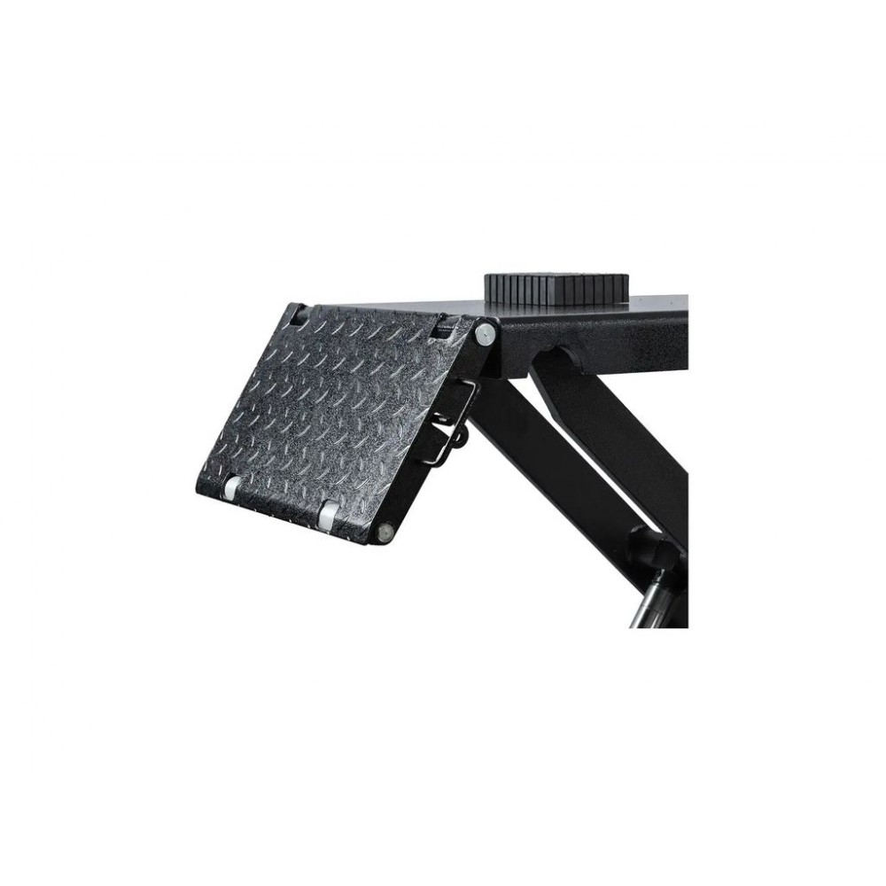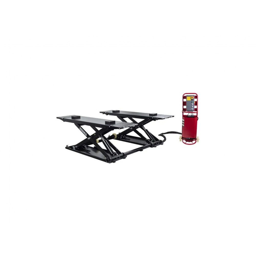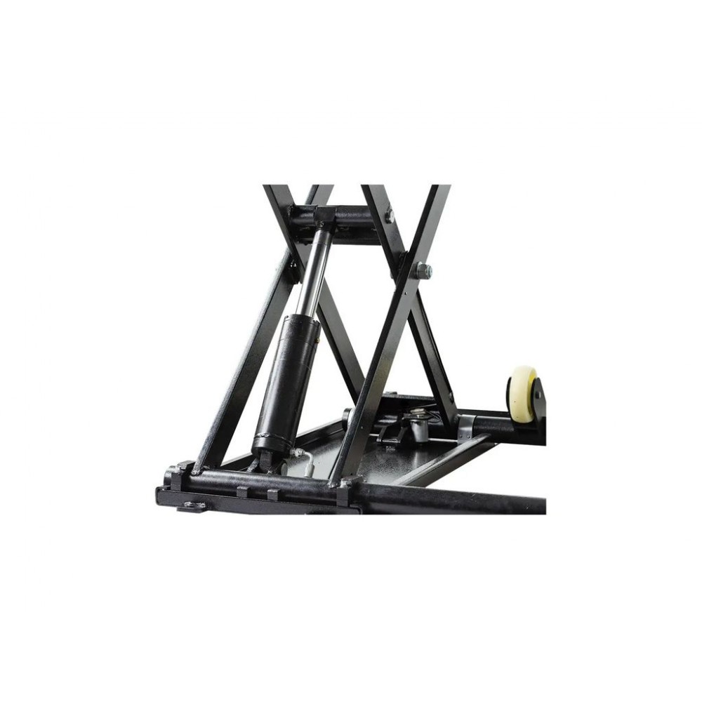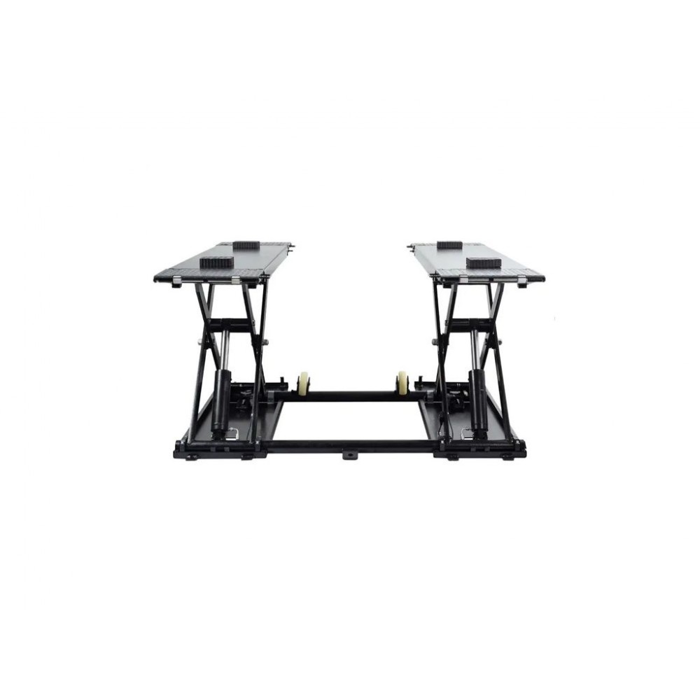 Потужна гідравлічна система забезпечує плавність та контрольованість підйому/опускання, а розкладні рифлені пандуси - легкий заїзд автомобіля на платформу. Довжина платформи без пандусів становить 1480 мм, з пандусами - 2080 мм, тому можна зручно обслуговувати різні типи авто. Окрема панель керування з кнопками для перемикання режимів робить цей мобільний ножичний підйомник зручним і легким в експлуатації.