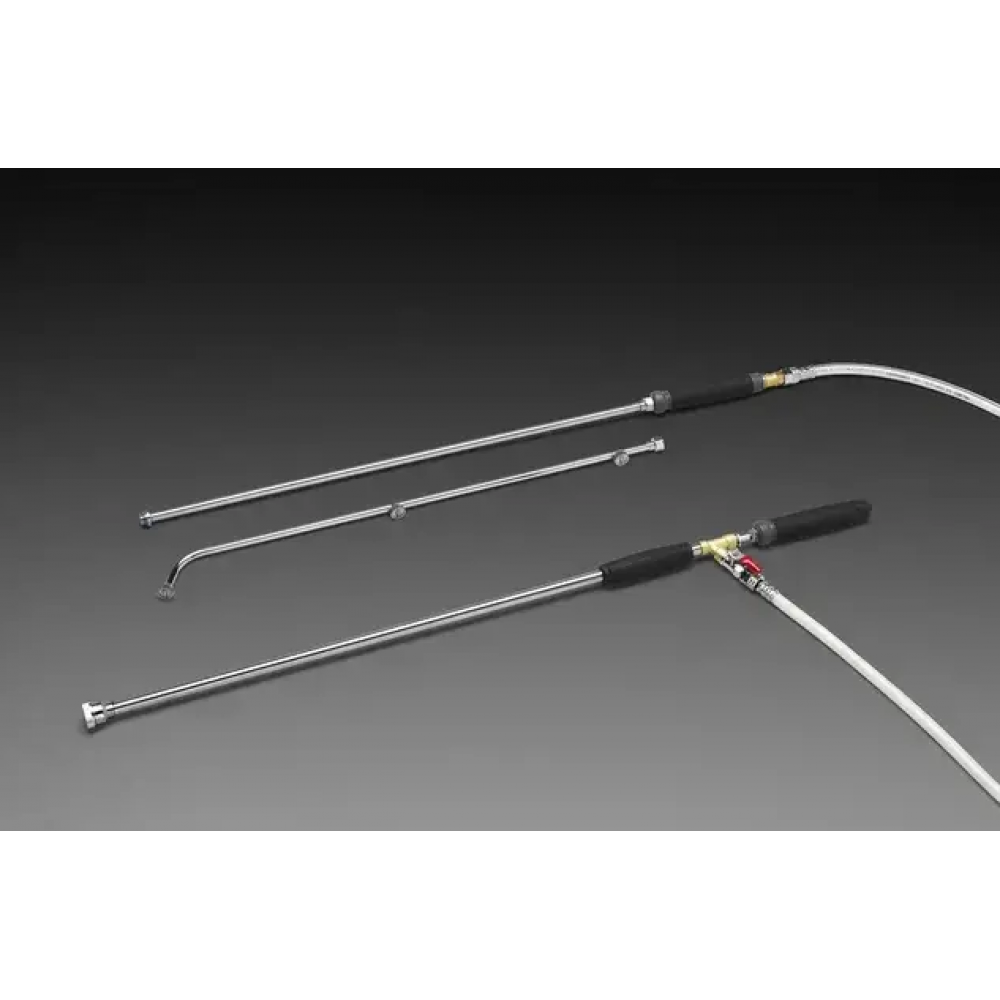 - Набір насадок включає пряму штангу довжиною 90 см і насадку з трьома розпилювачами, що адаптуються до різних умов роботи.