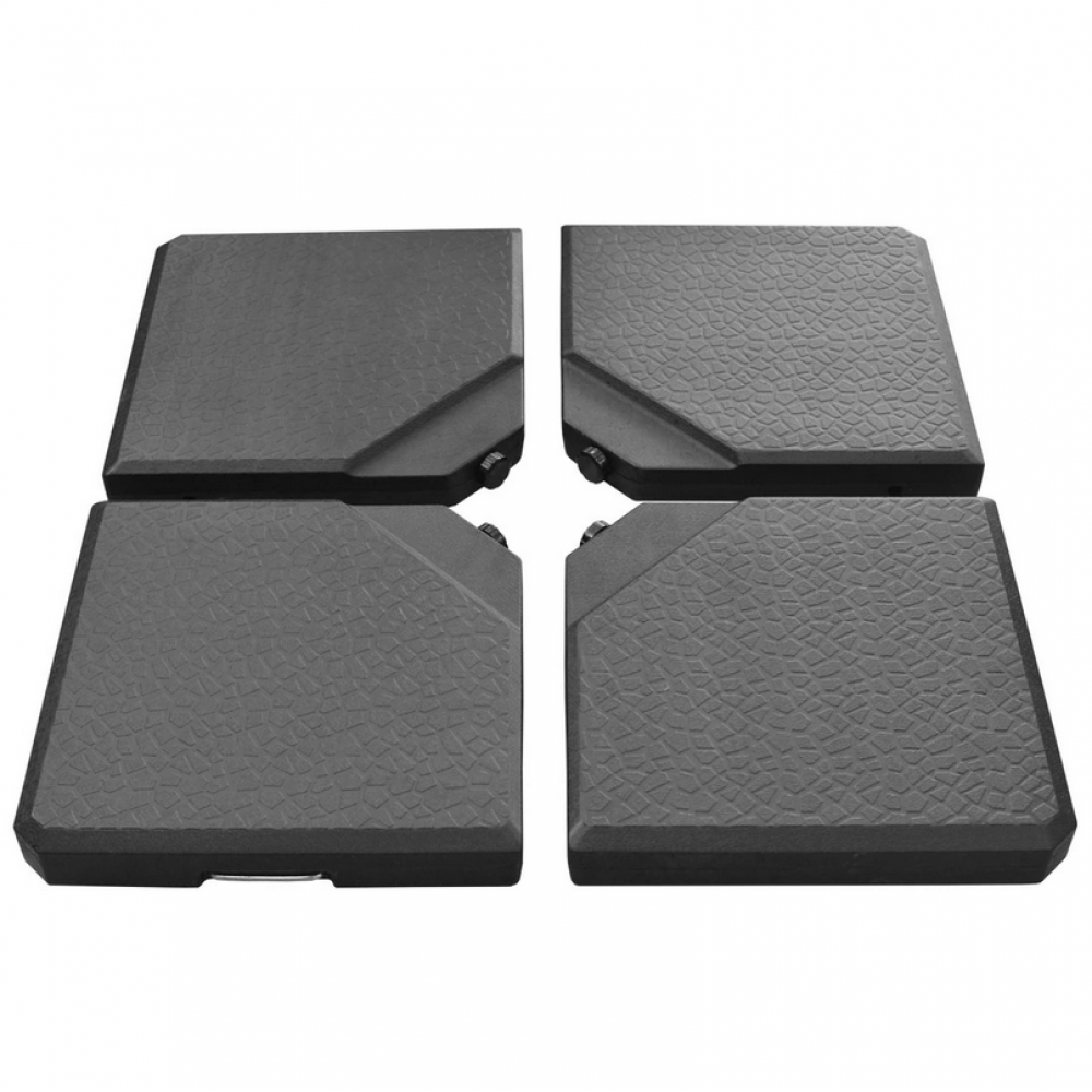 Завантажте тарілки під парасольку. 4 шт. (á = 50×50×6 см), які заповнюються водою або піском. Макс. вага 4 х 26 кг. Підходить для HECHT SANDY I., SUNNY, ROMA.