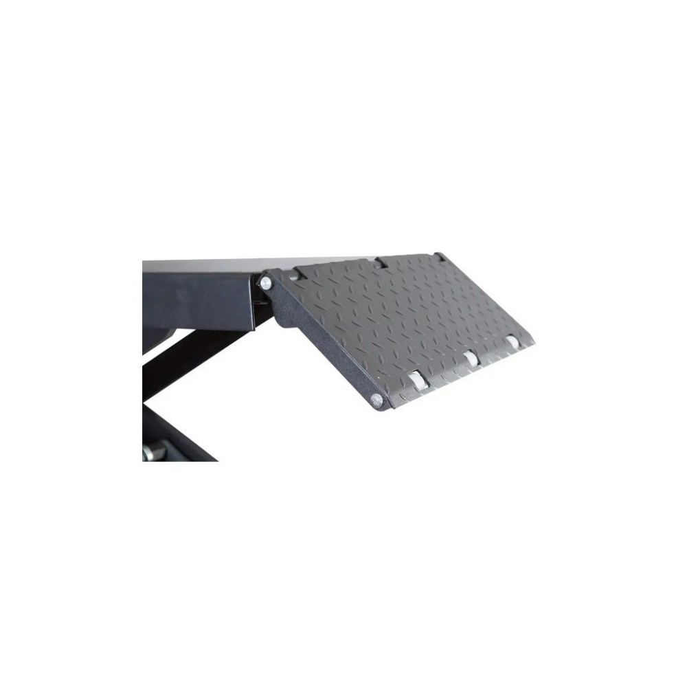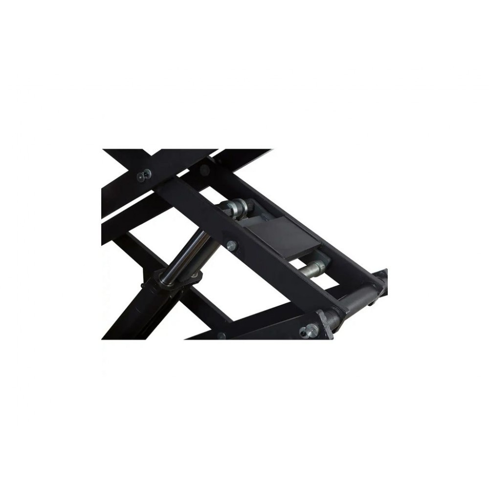 Дві незалежні платформи довжиною 1450 мм (без пандусів) дозволяють підняти автомобіль під потрібним кутом для обслуговування гальмівної системи, підвіски чи інших механізмів. Рифлені пандуси забезпечують легкий заїзд авто на платформи. Панель управління складається з 3 кнопок - підйом, опускання і фіксація у потрібному положенні, тому керування підйомником надзвичайно легке. Цей ножичний підйомник для СТО поставляється з 4 гумовими накладками для запобігання пошкодженню елементів автомобіля.