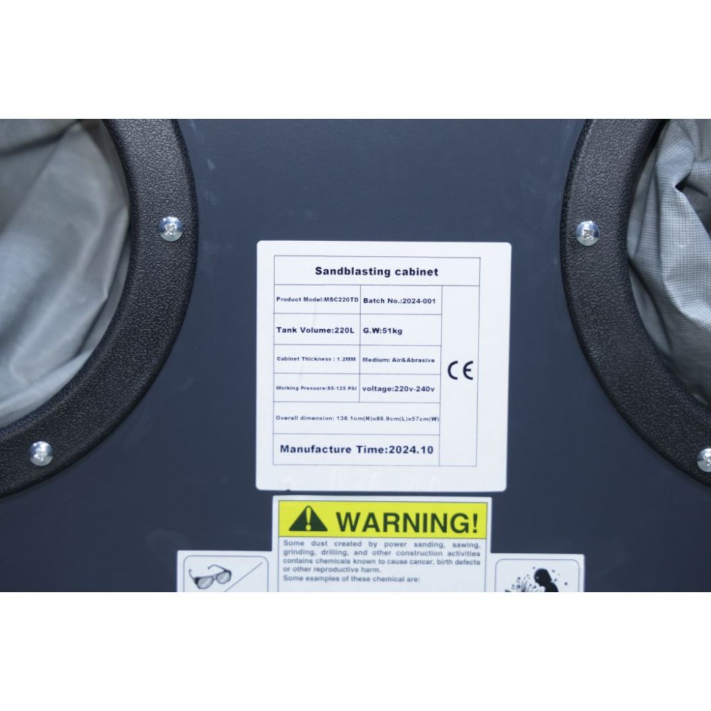 Піскоструменева камера MAST MSC220TD+DC15 - це компактне, високоефективне обладнання для обробки металу, каменю, скла та ін.