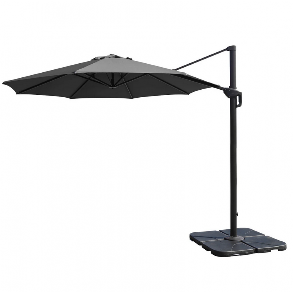 Алюмінієва парасолька діаметром 3,5 м з поперечною основою. 8 поперечин 17 х 25 мм. Діаметр стержня 53 х 80 мм. Просте відкриття і закриття за допомогою ручки. Поліестер 200 г/м2 з вентиляцією. Основа 100 х 100 см. Вертикальний нахил. Обертається на 360 градусів. УФ захист. Практична вентиляція даху. Стабільна конструкція.