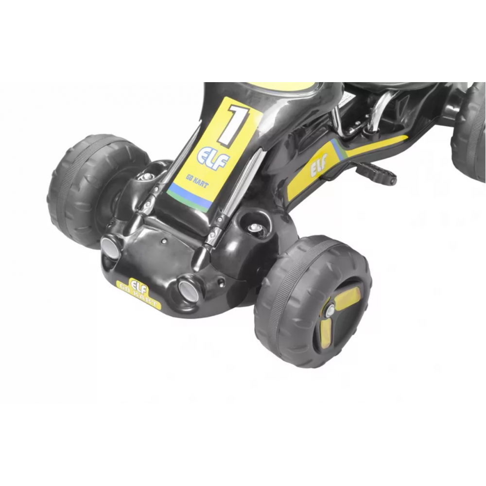 Педальний картинг з ланцюгом для хлопчиків і дівчаток від 3 до 6 років. Кольоровий дизайн привабливий для дітей, завдяки педалям маленькі діти навчаться принципу крутіння педалей, що стане в нагоді їм, коли вони пересядуть на велосипед. Коляска виготовлена з міцного пластику в поєднанні зі сталевими трубами. Колеса виготовлені з міцного пластику. Матеріал нешкідливий для здоров'я, картинг не має гострих країв і дуже стійкий. Таким чином, він стане безпечним джерелом розваги для дітей.