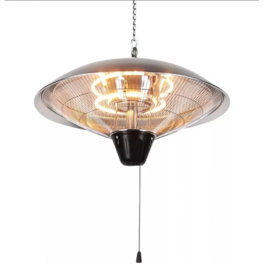 Підвісний інфрачервоний випромінювач підходить для внутрішніх і закритих екстер'єрів. Також його можна використовувати, наприклад, під дахами критих відкритих терас, альтанок і будь-де, де він розміщений під дахом, щоб не піддавався впливу дощу чи снігу. Тепло від пари вуглецевих трубок передається за допомогою інфрачервоного випромінювання, тому нагрівається не повітря, а поверхня твердих тіл у радіусі дії нагрівача, подібно до сонця. Якщо ви любите сидіти ввечері на терасі, можете продовжити літо завдяки інфрачервоному випромінювачу. Для монтажу достатньо прикріпити до стелі відповідний гак або вушко. Потім обігрівач підвішується за допомогою карабіна на кінці ланцюжка. При цьому необхідно мати стандартну електричну розетку в межах 1,5 м, або використовувати подовжувач. Ідеальним може бути встановлення розетки безпосередньо на стелі в межах досяжності обігрівача. У будь-який момент ви можете відключити і при необхідності почистити його.