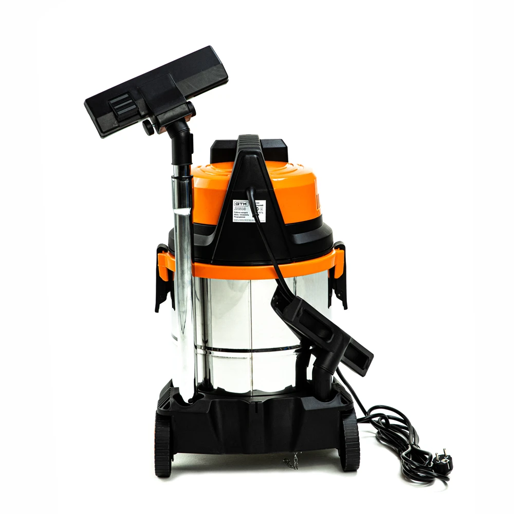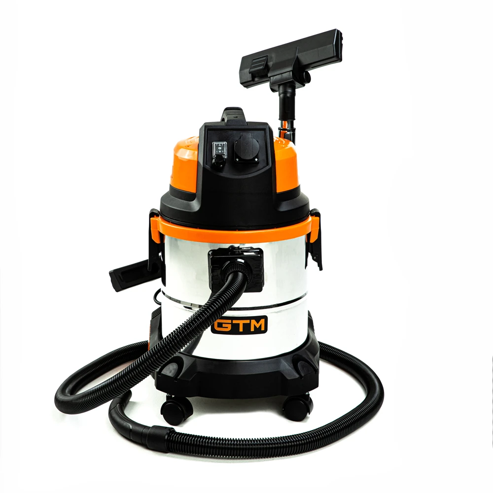 GTM JN 503 - компактний промисловий пилосос для прибирання сухого та вологого будівельного сміття, а також збору води після підготовки. Сертифікований для роботи з пилом класу L. Працює від побутової електромережі з напругою 220 В. Його контейнер виготовлено з нержавіючої сталі та має ємність 30 літрів чого достатньо для поглинання грубого або дрібного сміття.