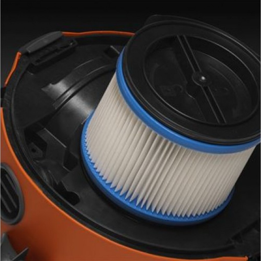 - клас L. Пилосос підходить для роботи як із сухими, так і з вологими забрудненнями, забезпечуючи універсальність у різних робочих сценаріях.