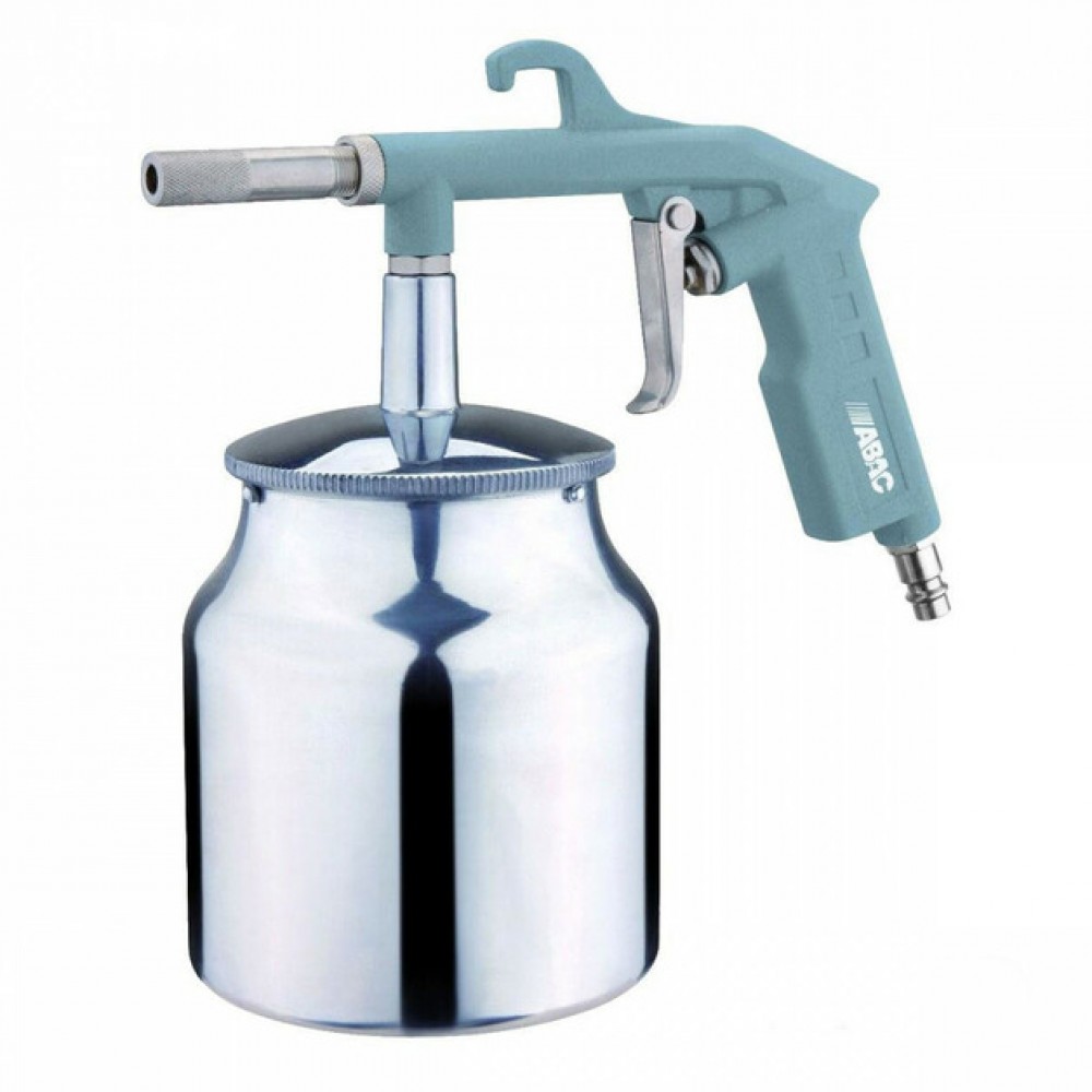 Піскоструминний пістолет ABAC призначений для використання на автомобілях та в автомобільних сервісних центрах. Він оснащений нижнім розташуванням бака з місткістю до 1000 мл та швидкознімним типом з'єднання, що забезпечує зручність при роботі. З робочим тиском 8 бар та витратою повітря 250 л/хв він відповідає професійному рівню якості