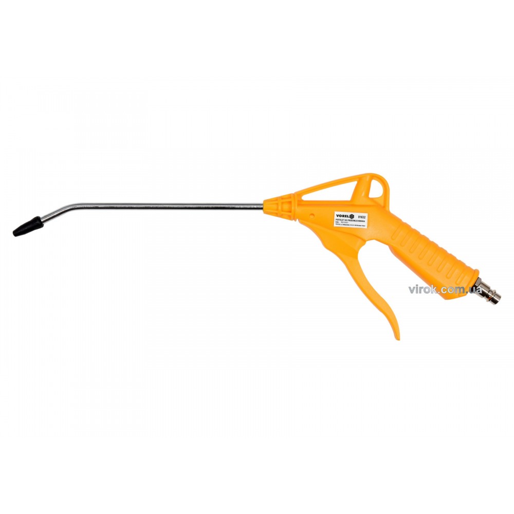 Пістолет VOREL 81632 з подовжувачем для продування стиснутим повітрям. Ідеально підходить для видалення бруду та пилу з машин, пристроїв та двигунів, а також для використання в домашній майстерні та гаражі.