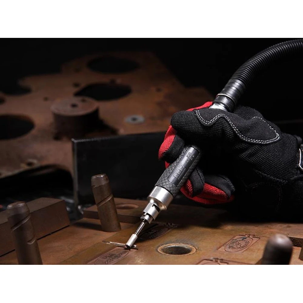 Пневматичний гравер Mighty Seven QA-432 (QA-432) - пневмоінструмент для очищення металевих поверхонь від іржі, старих захисних покриттів, забруднень, окалини, наклейок, а також зачищення гумових, металевих, пластмасових, кам'яних та дерев'яних виробів. Можливість працювати з тим чи іншим матеріалом залежить від технічних характеристик інструменту та властивостей робочої шарошки. За хвилину ця модель витрачає до 29 літрів повітря. Під час роботи видає до 70 000 оборотів.