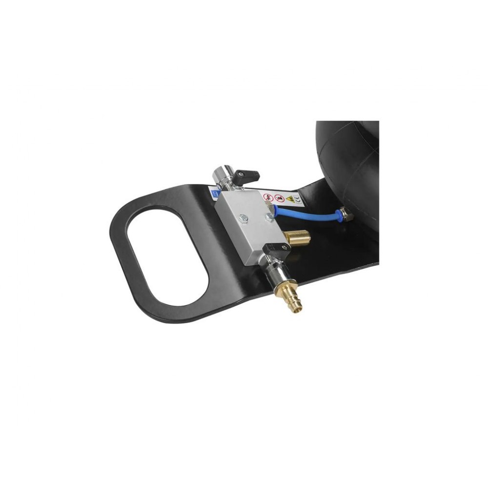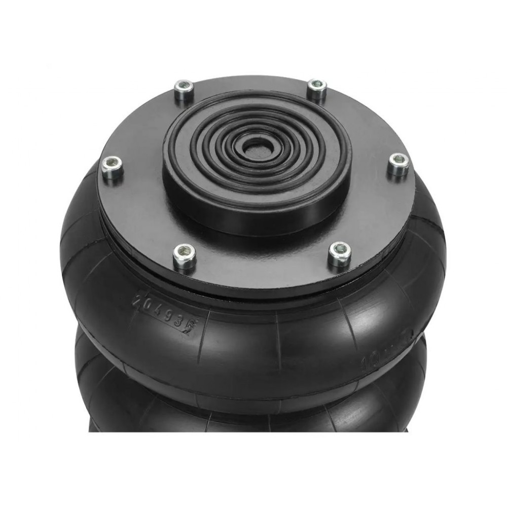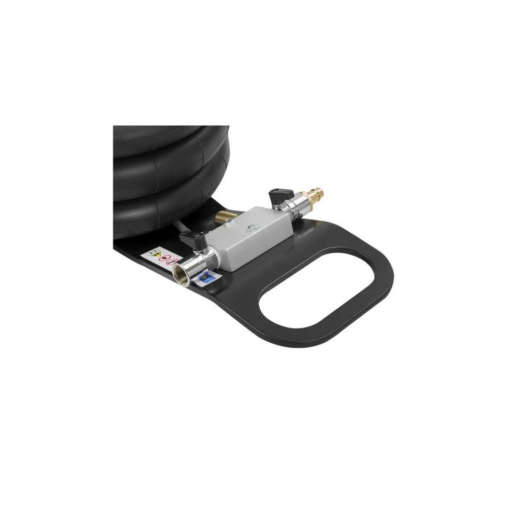 Робочий тиск підйомника - 6-10 Бар. Для безпечності експлуатації є запобіжний клапан, який спрацьовує при перевищенні допустимого тиску. Пневмоподушка виготовлена з міцної армованої гуми і має діаметр 260 мм. Основа зі сталі з антикорозійним покриттям стійка до зносу та скручування. 2 міцних колеса і вага всього 20 кг дозволяють легко переміщати цей пневматичний домкрат для автомобіля по робочій зоні.