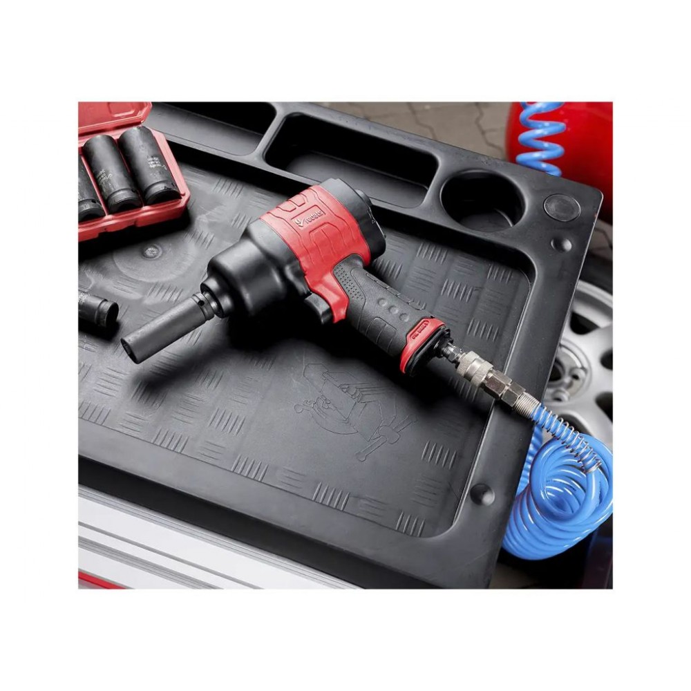 Модель має 3 рівні затягування і 1 - відкручування, які можна регулювати однією рукою. Для регулювання швидкості обертання є точний курок, зміна напрямку обертання здійснюється за допомогою перемикача на ручці. Цей пневмогайковерт для СТО має міцний корпус з композитного матеріалу, ергономічну ручку з надійним хватом і вагу всього 2,2 кг, що робить його ідеальним вибором для довготривалого використання.