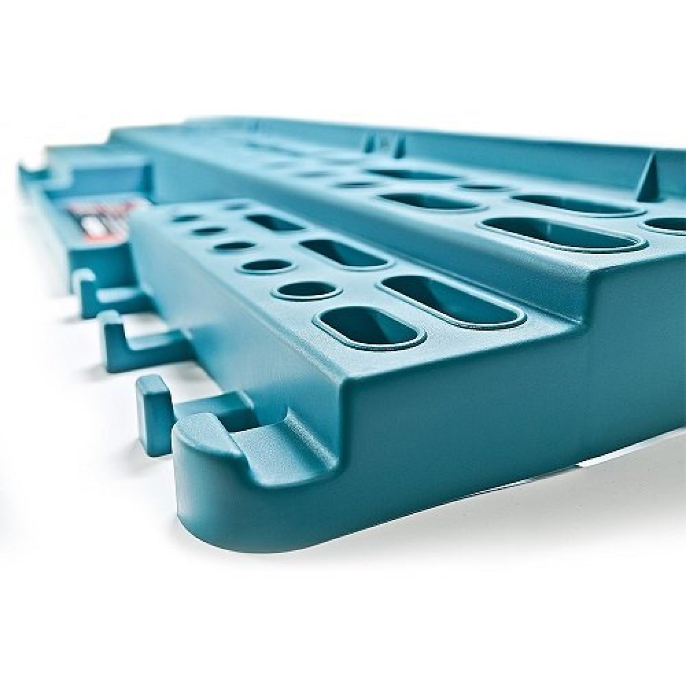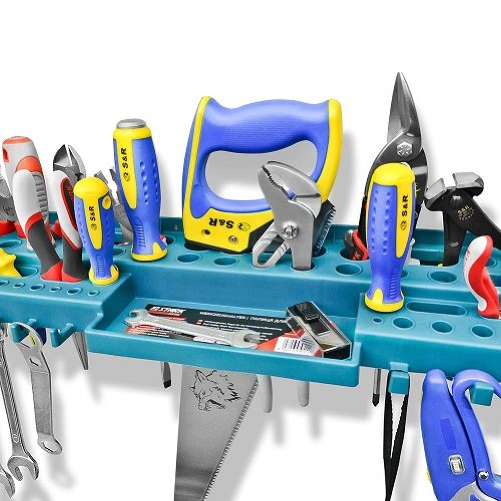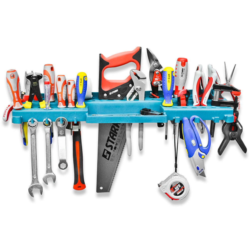 Завдяки безлічі отворів різного діаметра кожен інструмент на своєму місці. Для викруток вузькі отвори, шарнірно-губцевий інструмент можна розмістити в більш широких отворах, а ключі повісити на гачки. Для дрібних деталей або кріпильних елементів передбачена спеціальне заглиблення.