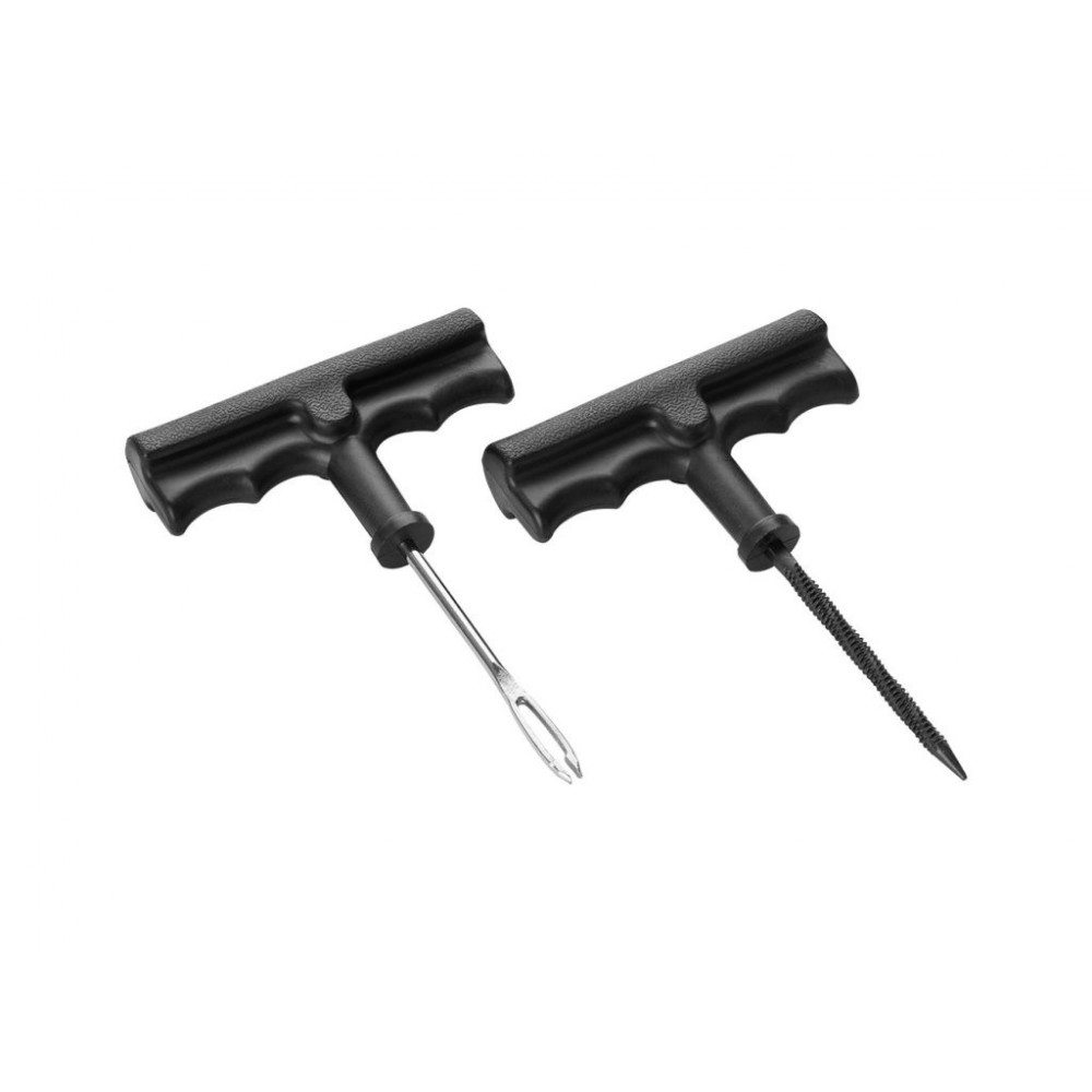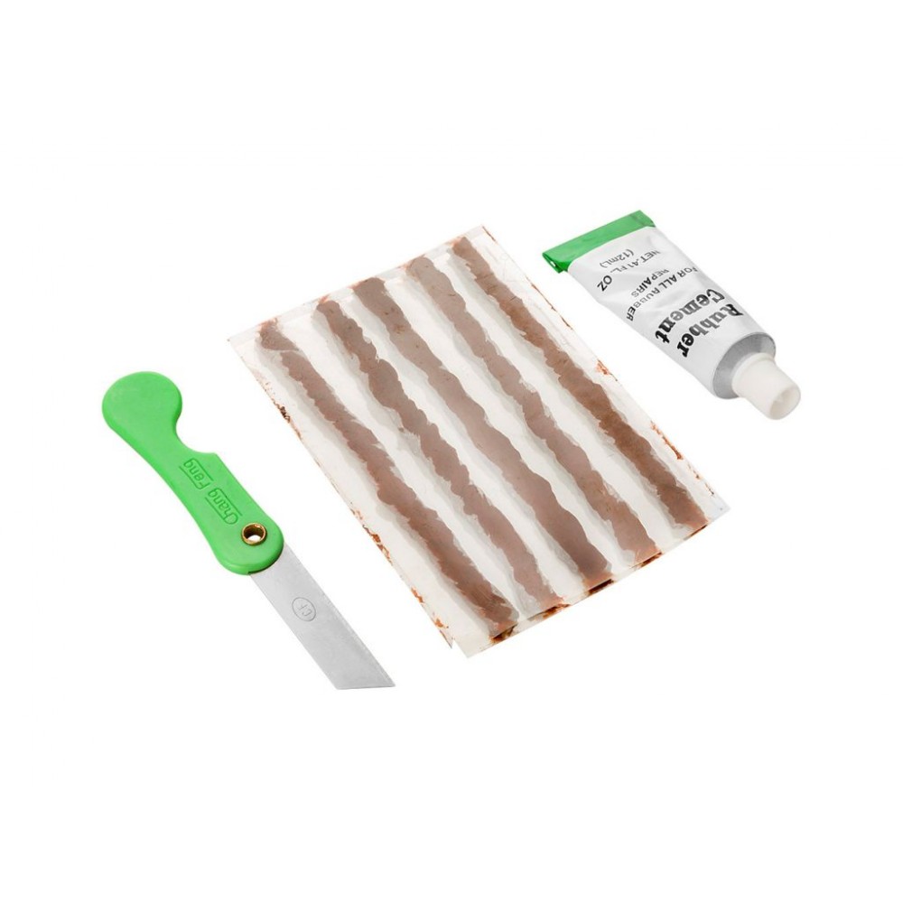 Інструмент виготовлений із загартованої сталі і має прогумовані ручки, що забезпечує його надійність і зручність. Латки просочені спеціальним вулканізуючим розчином для надійного і довговічного з’єднання з гумою. Завдяки компактному розміру, універсальності та автономності, цей портативний набір для ремонту шин можна зручно зберігати в багажнику автомобіля та ефективно використовувати у польових умовах.