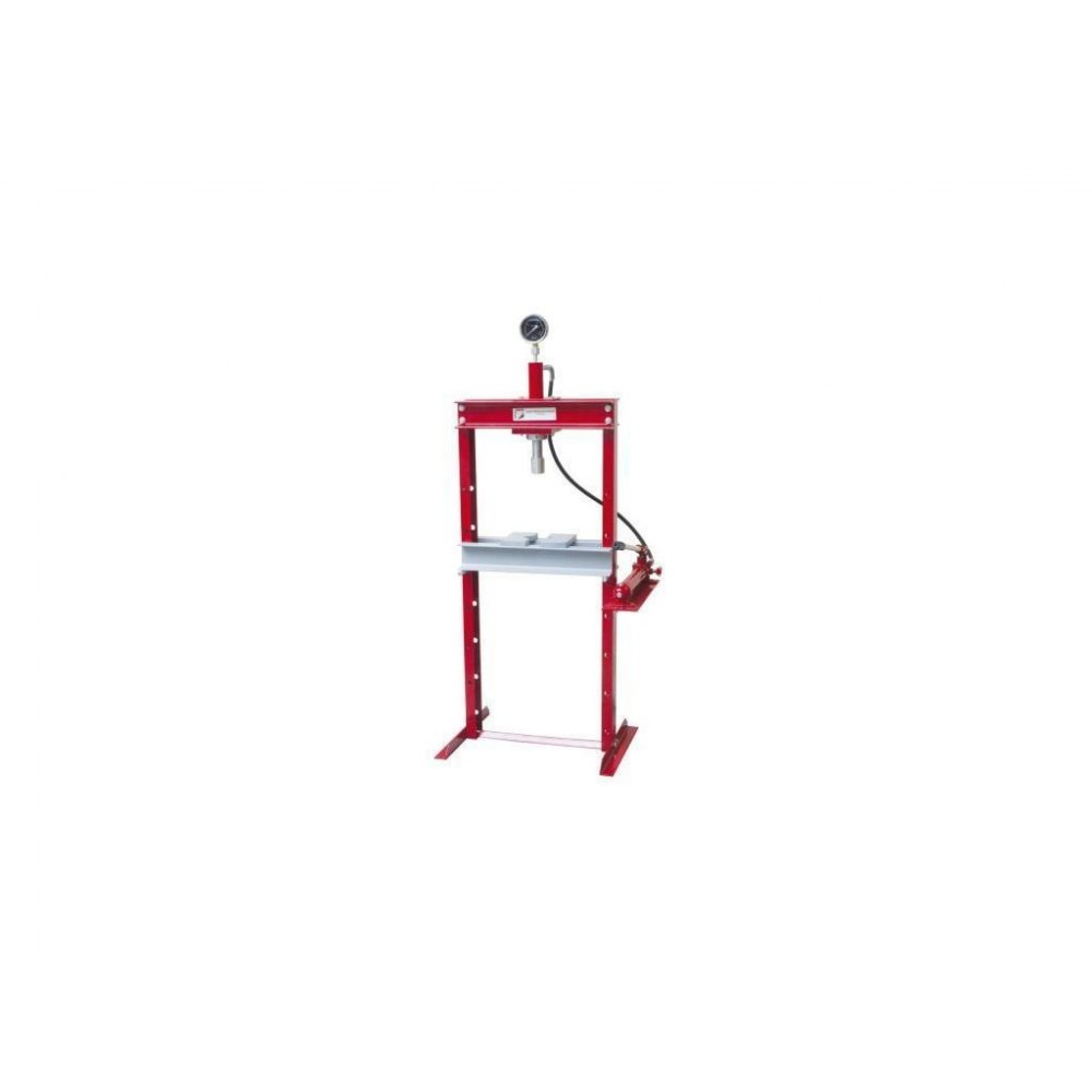 Зварна конструкція преса виготовлена з високоякісних матеріалів і характеризується високою міцністю і зносостійкістю. Прес розташований вертикально, для досягнення максимальної гнучкості роботи є можливість переміщення прес-блоку горизонтально. Автоматичне відведення поршня спрощує і прискорює робочий процес. Опорний стіл регулюється по висоті від 0 до 988 мм за рахунок отворів на стійках. Досить компактний розмір дозволяє зручно встановлювати цю модель у невеликих приміщеннях. Функціональні особливості дають змогу ефективно використовувати такий гідравлічний прес для автомайстерні, ремонтних і монтажних робіт та багатьох інших застосувань.
