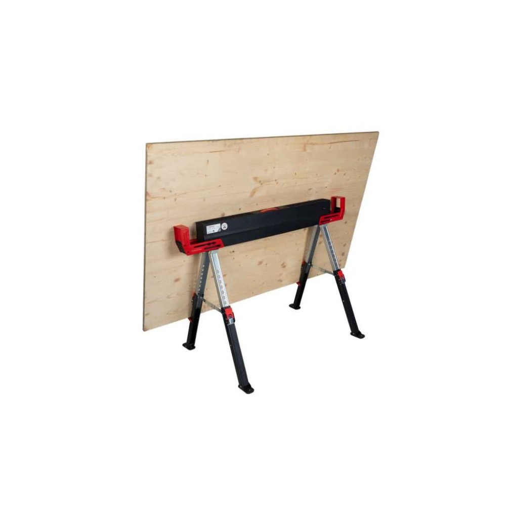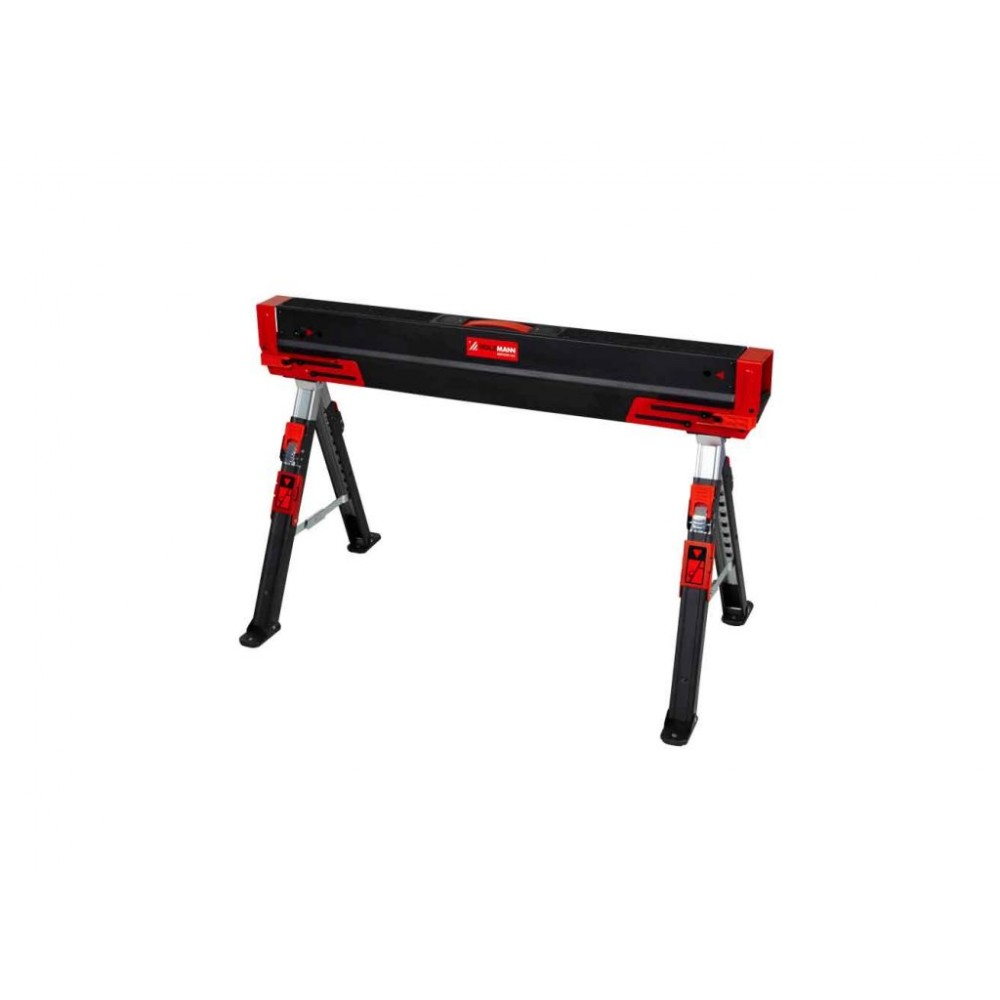 Для надійної фіксації стільниці чи обладнання естакада оснащена кронштейнами з регулюванням по ширині від 0 до 90 мм зліва і справа. Регулювання по висоті можливе на 9 рівнів у діапазоні 630-820 мм. Міцна, стійка до деформацій конструкція і стійкі ніжки забезпечують надійну опору на будь-якій поверхні. Ніжки можна повністю скласти. У складеному вигляді естакада надзвичайно компактна, що, у поєднанні з висувною ручкою, гарантує легке транспортування і зручне зберігання. Підставка під верстат естакада Holzmann AB1085FLEX доступна для замовлення на сайті офіційного постачальника виробника в Україні KMA.UA.