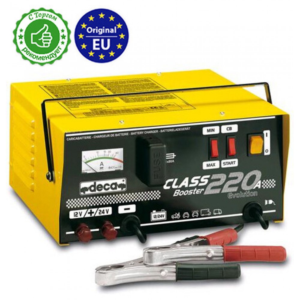 DECA CLASS BOOSTER 220A – пуско-зарядное устройство предназначено для зарядки аккумуляторов емкостью от 20 до 300 Ah и принудительного запуска двигателя. При этом, данная модель обслуживает все типы современных автомобильных аккумуляторов (Pb GEL, Pb Ca, Pb WET, Pb AGM). Особо эффективно устройство для запуска в холодную пору года двигателей легковых и среднегабаритных автомобилей. При низкой температуре воздуха пусковой ток аккумулятора значительно понижается и его не всегда достаточно для запуска мотора. В данном случаи пусковое устройство помогает разряженной батареи и отдает свой пусковой ток. CLASS BOOSTER 220A относится к профессиональным пусковым устройствам, с режимом заряда 12 и 24 V. Это позволяет заряжать как один аккумулятор емкостью до 300 Ah так и одновременно две батареи емкостью до 150 Ah. Оборудование защищено от перегрузки и инверсии полярности. Работает от сети 220 Вольт, имеет компактные габариты и весит всего 11,0 кг. Рекомендуется купить пуско-зарядное устройство DECA CLASS BOOSTER 220A для бытового применения, а также на СТО, автомастерских и автопарках.