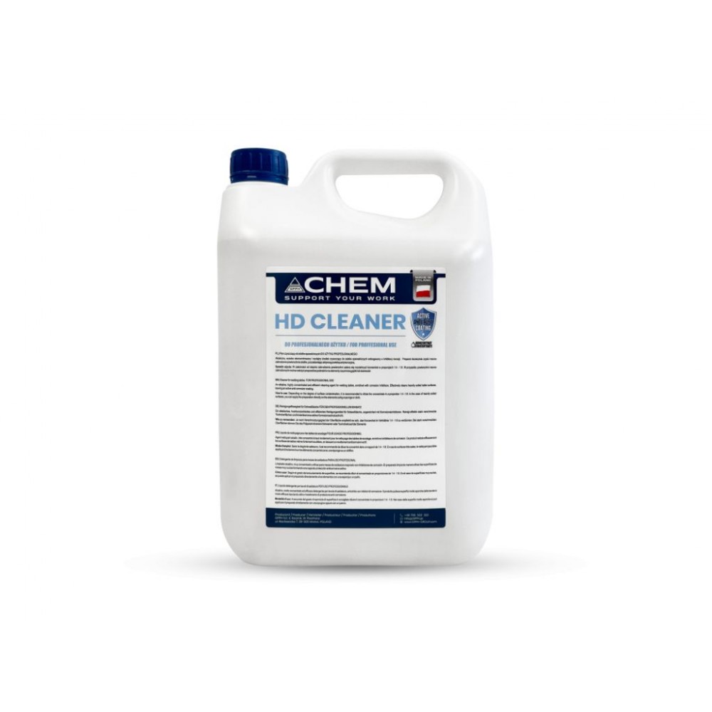 Лужний, висококонцентрований та ефективний засіб для очищення зварювальних столів, збагачений інгібіторами корозії. Продукт ефективно очищає сильнозабруджені поверхні столів, залишаючи активний антикорозійний захисний шар. Завдяки спеціально розробленій формулі, HD Cleaner відзначається високою ефективністю.
