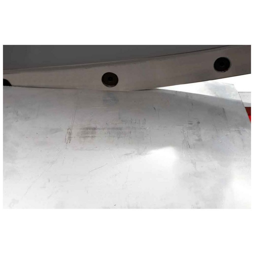 Станина верстата виготовлена з якісного металу і має стійкі V-подібні опорні ніжки з поперечинами, що забезпечує надійну фіксацію на поверхні. Проста експлуатація, відмінна зносостійкість і компактний розмір роблять цей верстат надзвичайно зручним у користуванні, а сертифікат СЕ підтверджує, що ці шабельні ножиці відповідають європейським стандартам якості та безпеки.