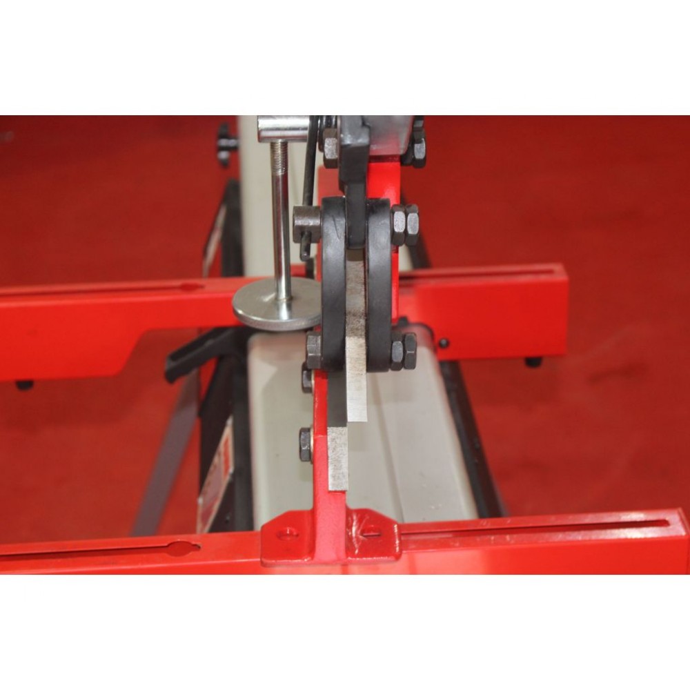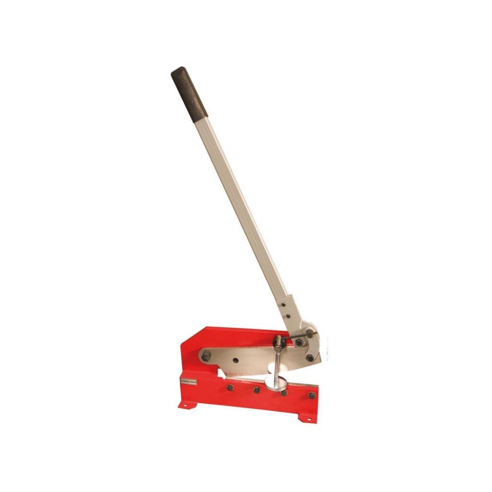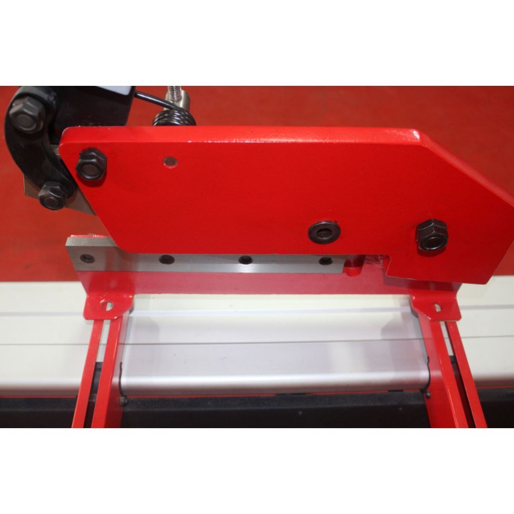 Леза виготовлені з вуглецевої сталі, мають високу ріжучу здатність і тривале збереження гостроти. Для різання прутків на лезах є спеціальні виїмки. Автоматичне пружинне повернення важеля у вихідне положення після закінчення різу полегшує роботу і робить її зручнішою. Для запобігання скручуванню і деформації заготовки є автоматичний притискний пристрій. Корпус з литого чавуну мінімізує вібрації, а монтажні отвори забезпечують надійну фіксацію інструмента на робочій поверхні. Ця ручна гільйотина по металу повністю автономна в роботі і має низькі експлуатаційні витрати, що робить її вигідним придбанням для виїзних робіт та використання у майстерні.