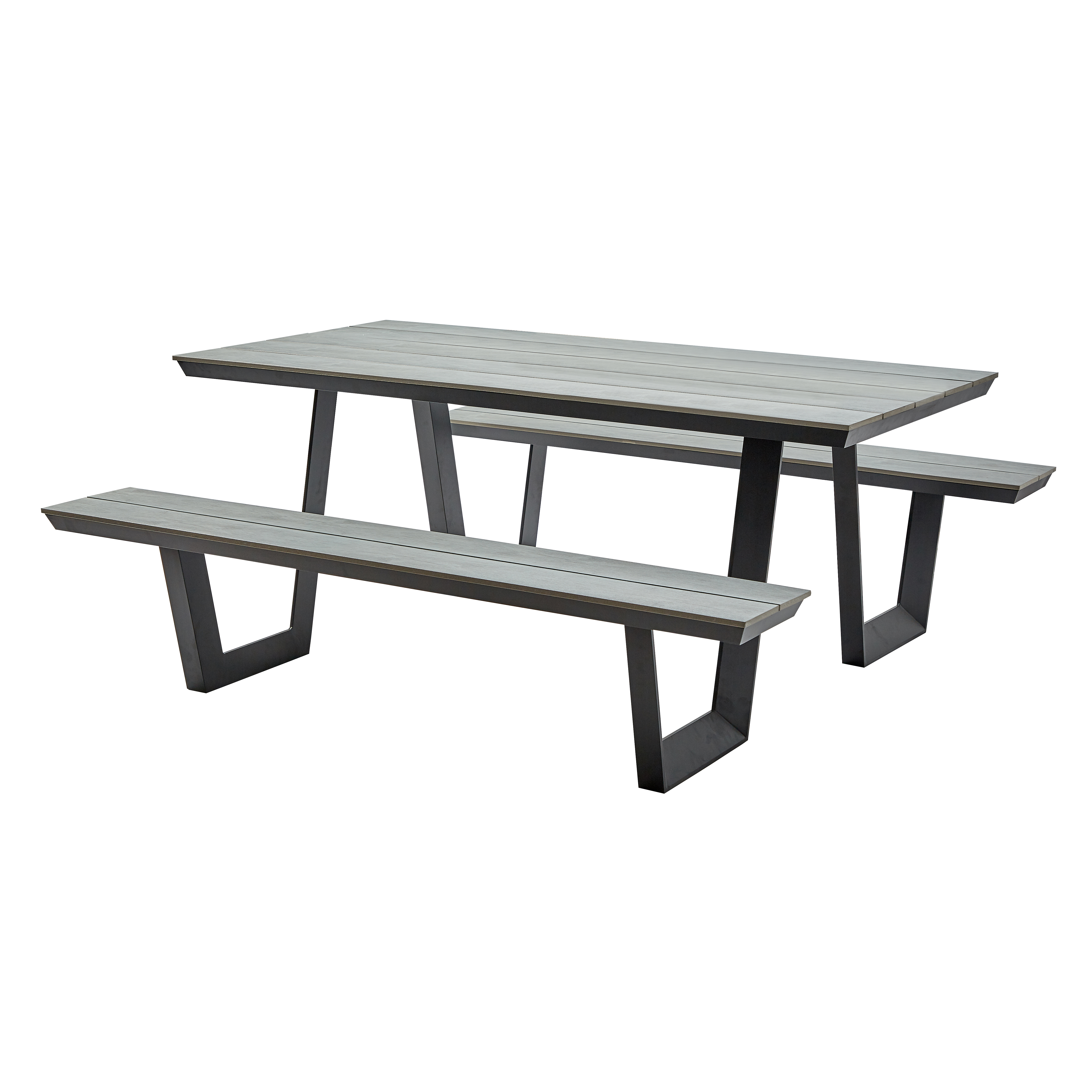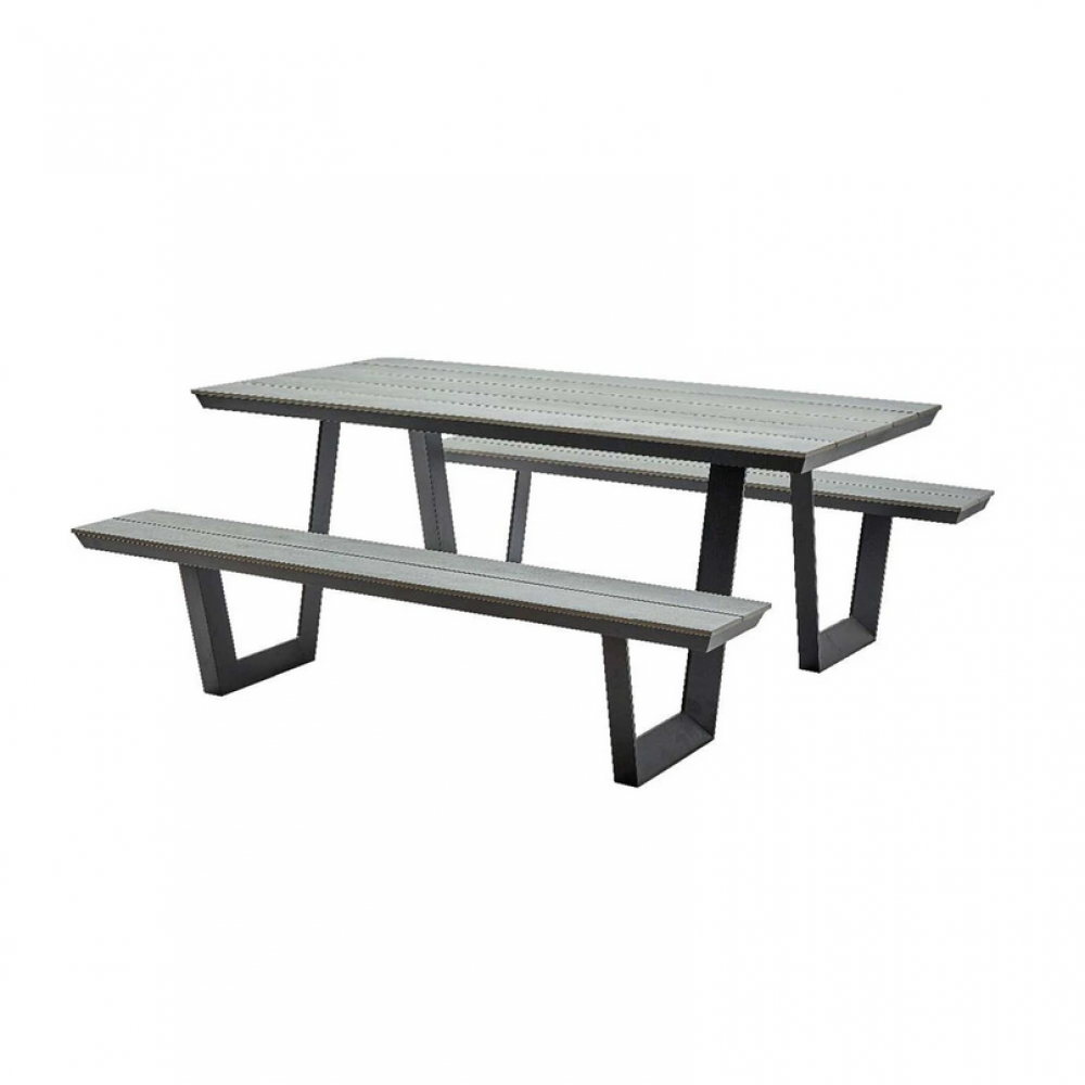 - Садові лавки із столиком в комбінації алюмінію та полідеревини характеризується тривалим терміном служби без обслуговування.