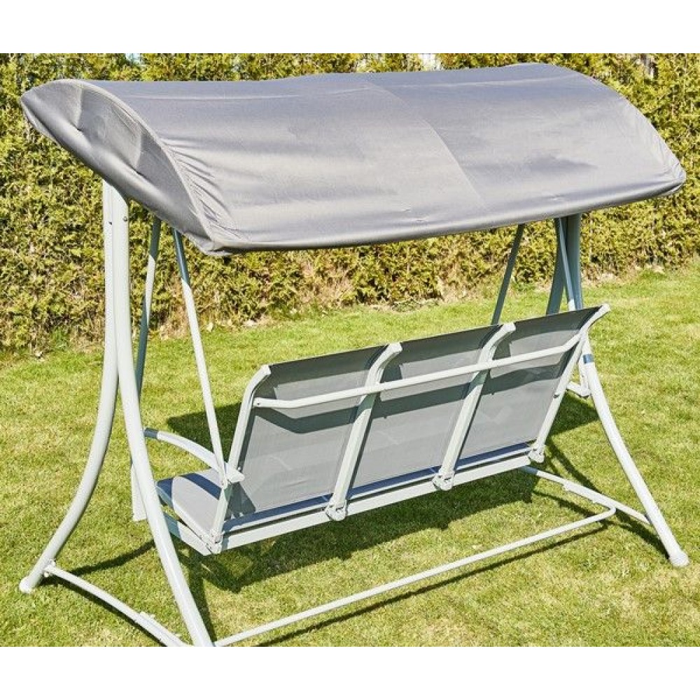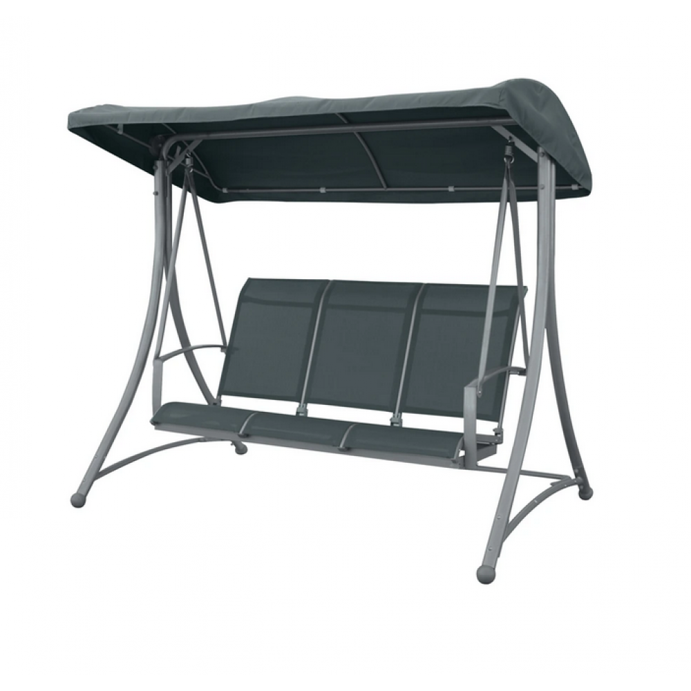 Качеля садова (3-х місна) Розмері : 130 х 185 х 170 см Максимальне навантаження: 240 кг Матеріал: стальні труби, полиестер 210г/м2