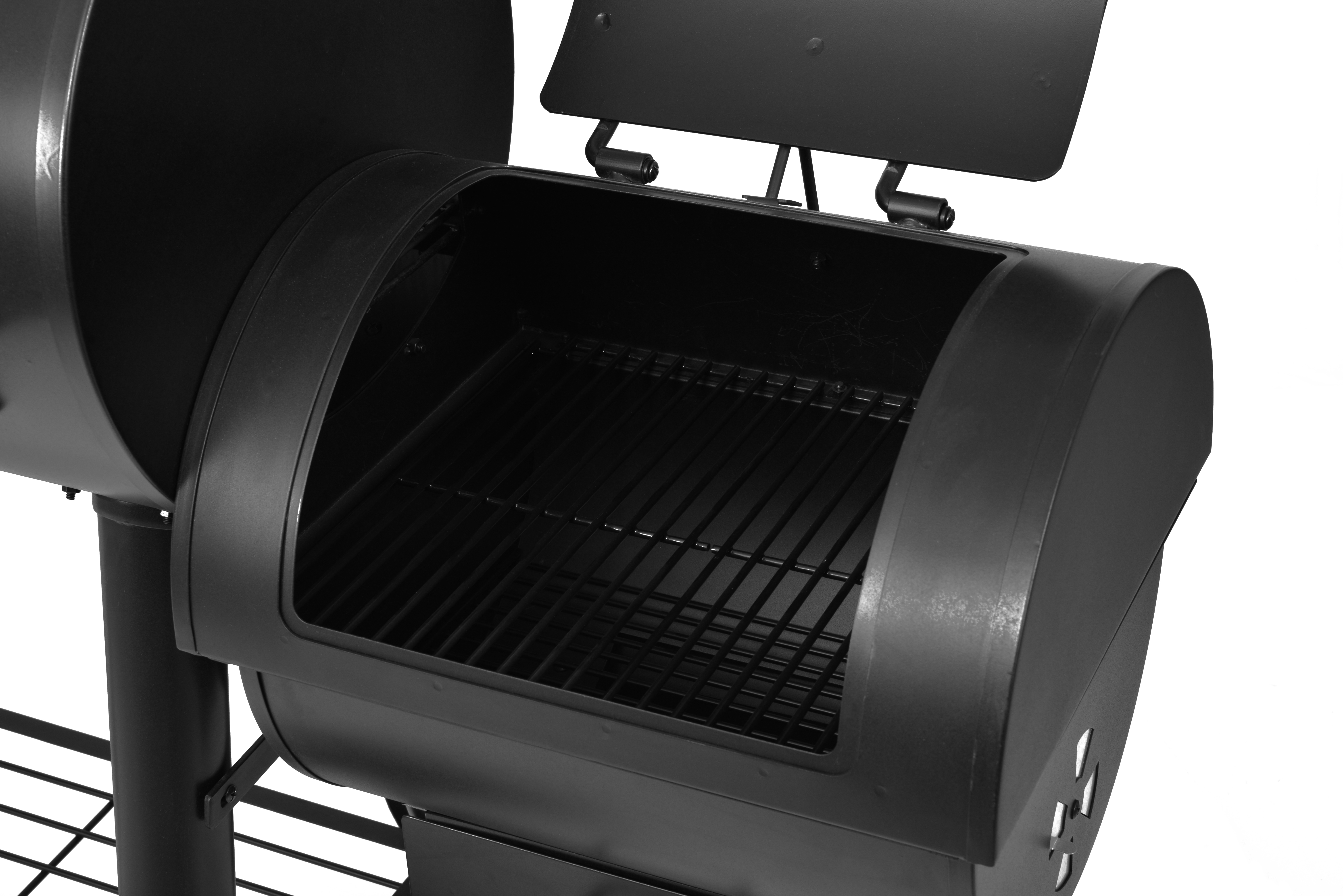 В грилі є два каміна. Кожна топка має грати зі спеціальним міцним покриттям. Дно топки особливо підходить для непрямого гриля, але може також використовуватися як повноцінний окремий гриль. Пластина на дні печі і друга заслінка на димоході використовуються для регулювання та контролю температури повітря, що проходить через вентиляційну решітку.