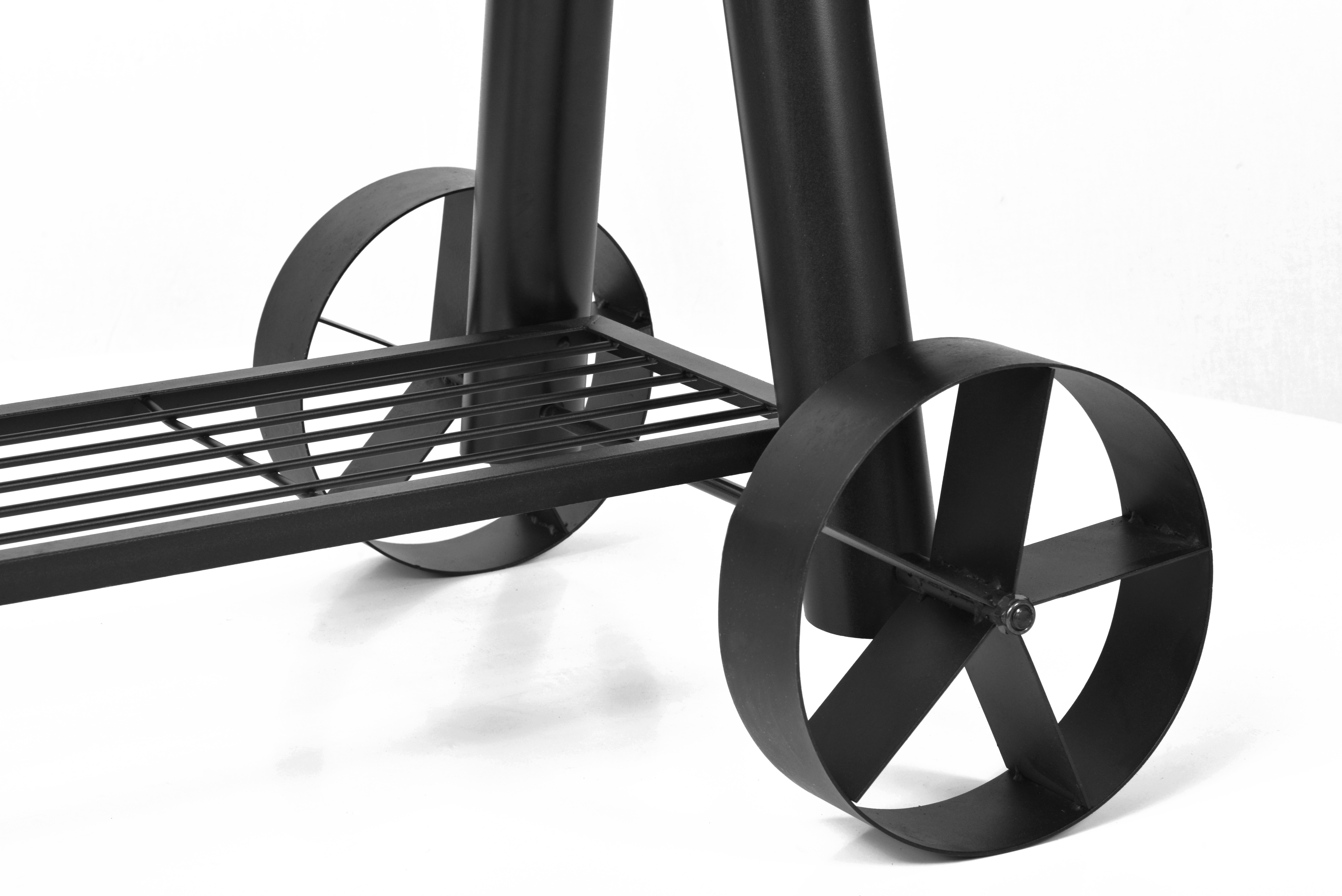 Для легкого та зручного перенесення гриля є міцні сталеві колеса і практична ручка.