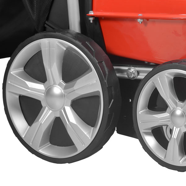 Не обтяжує спину або руки оператора, оскільки він їде по землі на колесах і не потрібно його носити, як більшість аналогічних засобів для чищення листя.