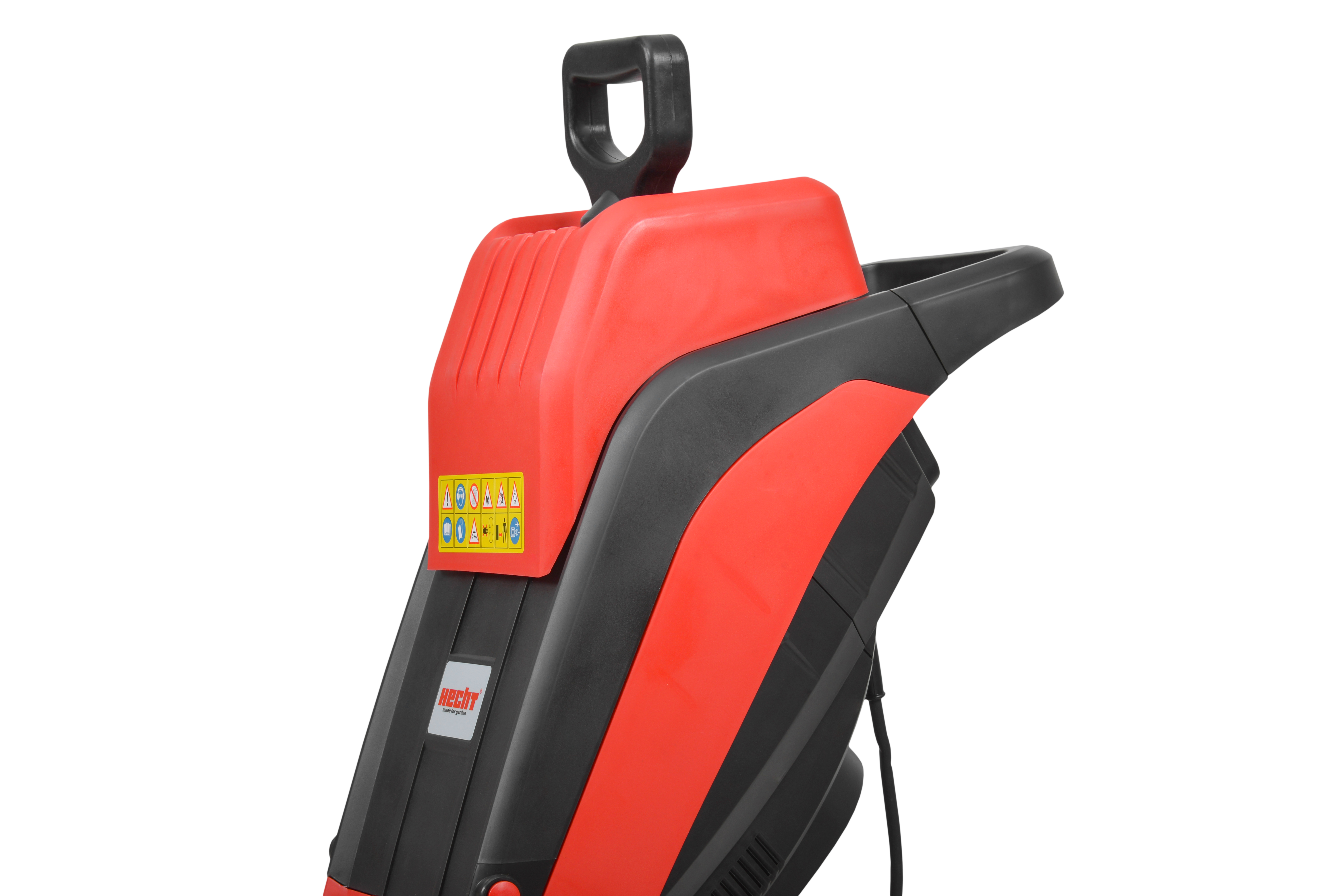 Незважаючи на невелику вагу 11 кг, подрібнювач стійкий і надійний. Це забезпечується масивною рамою з 2 колесами. HECHT 6024 можна швидко і легко встановити у відповідному місці використання.