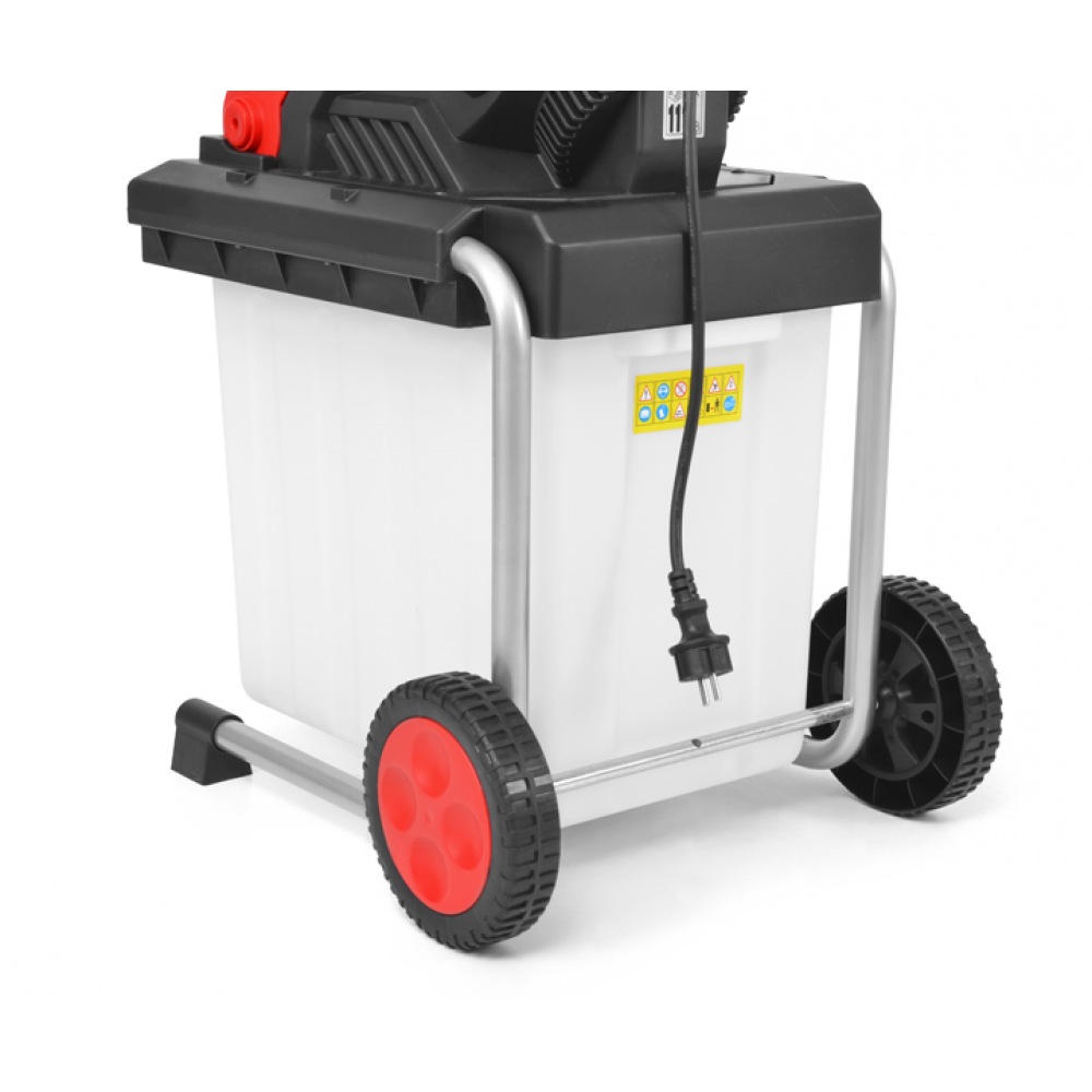 Потужний електродвигун: Двигун потужністю 2500 Вт гарантує ефективне подрібнення гілок діаметром до 45 см, що робить їх придатними для подальшого використання в саду.