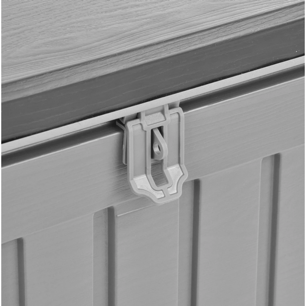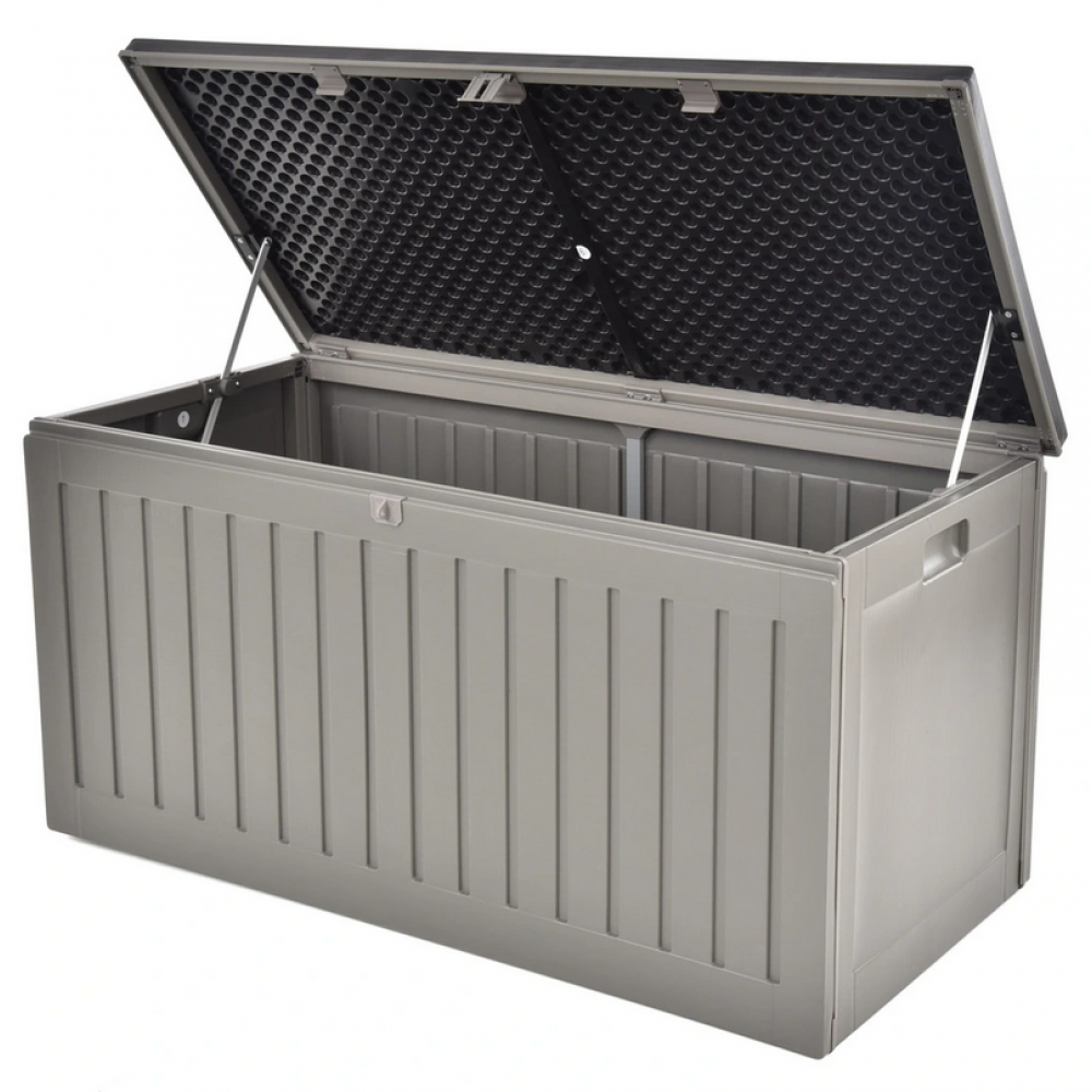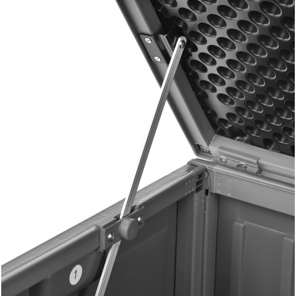 Для внутрішнього та зовнішнього використання, фігурні ручки, матеріал PP та сталь. Розміри: 1465 х 710 х 750 мм . Пластиковий ящик для зберігання забезпечить вам достатньо місця для зберігання не тільки в саду, але і в приміщенні. Він призначений для зберігання іграшок, ковдр, подушок, інструментів і подібних речей, якими ви зазвичай користуєтеся в саду. Може служити не тільки місцем для зберігання, але і столом. Він оснащений міцними петлями з відкриваючими заслінками для полегшення поводження з кришкою. Амортизатори також запобігають раптовому закриванню кришки та можливому травмуванню пальців тощо. Виготовлений з міцного та якісного пластику, який практично не потребує особливого догляду. Для зручності використання ящик оснащений двома ручками з боків.