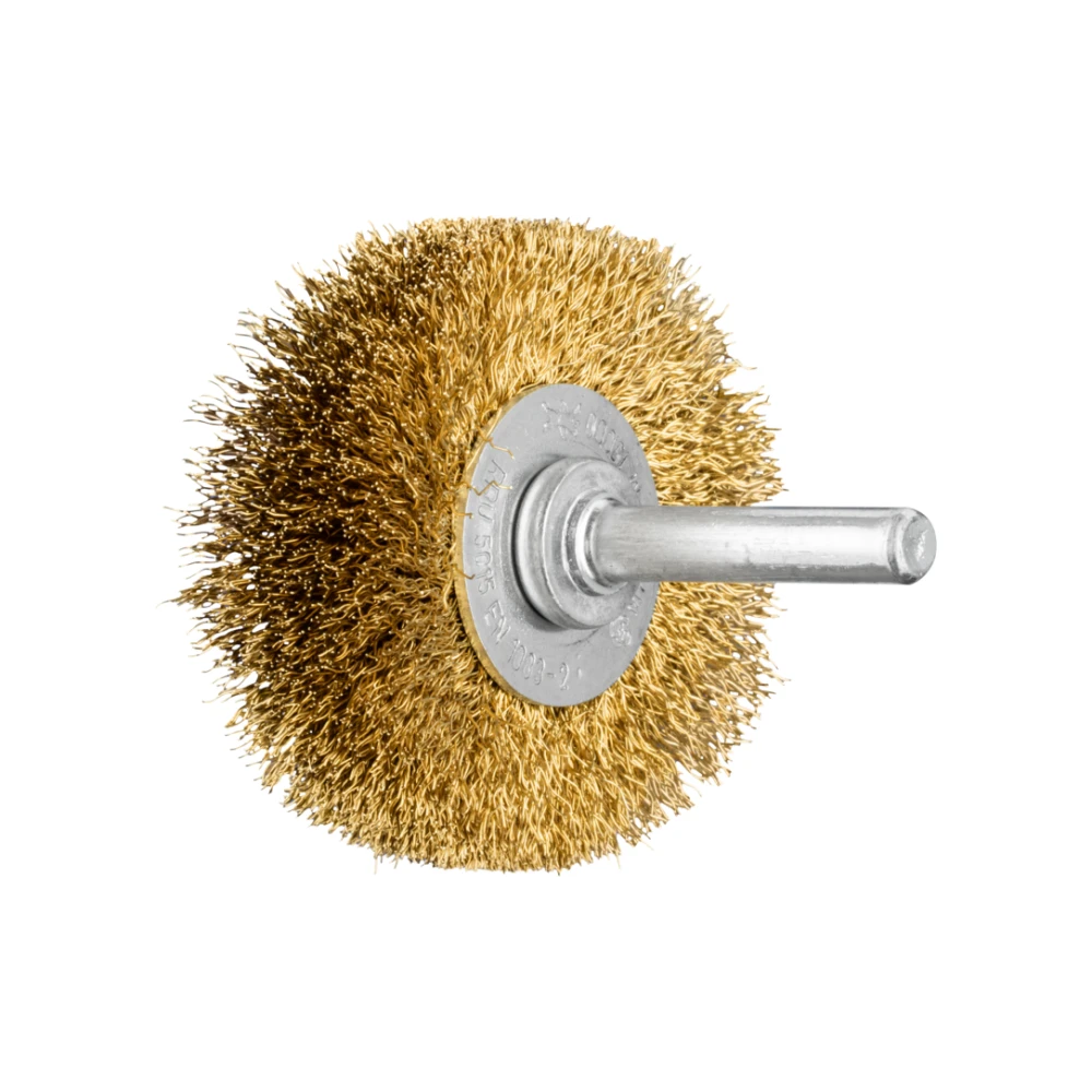Щітка дискова латунна Pferd - витратний матеріал для очищення, знепилювання, вирівнювання, очищення зварних швів, легкого видалення задирок, видалення корозії та фарби. Під час роботи рекомендується дотримуватися від 6000 до 9800 об/хв.