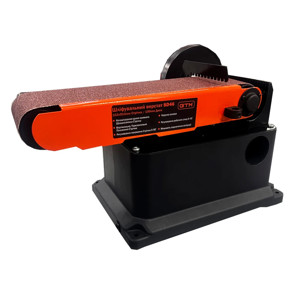 GTM SD46 - дисково-стрічковий шліфувальний верстат для обробки різних поверхонь. Залежно від обраної зернистості диска і стрічки, верстат підходить як для грубого шліфування, так і для полірування заготовок.