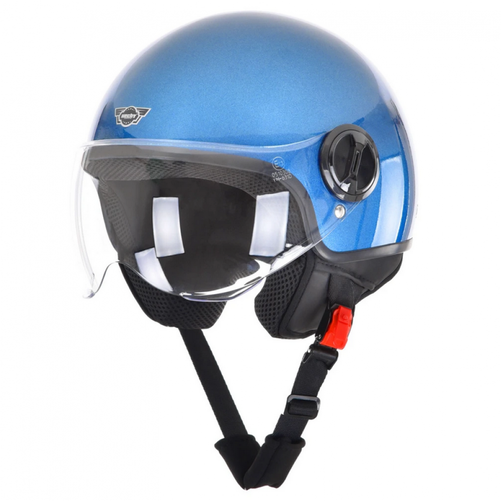 Захисний шолом підходить для скутерів і мотоциклів. Європейська омологація. матеріал ABS. Розмір XL (обхват голови 59 см). Всередині є знімна / миється і зручна вставка, ремінь для кріплення з швидким зняттям. Шолом має якісне гладке покриття та регульований щиток.