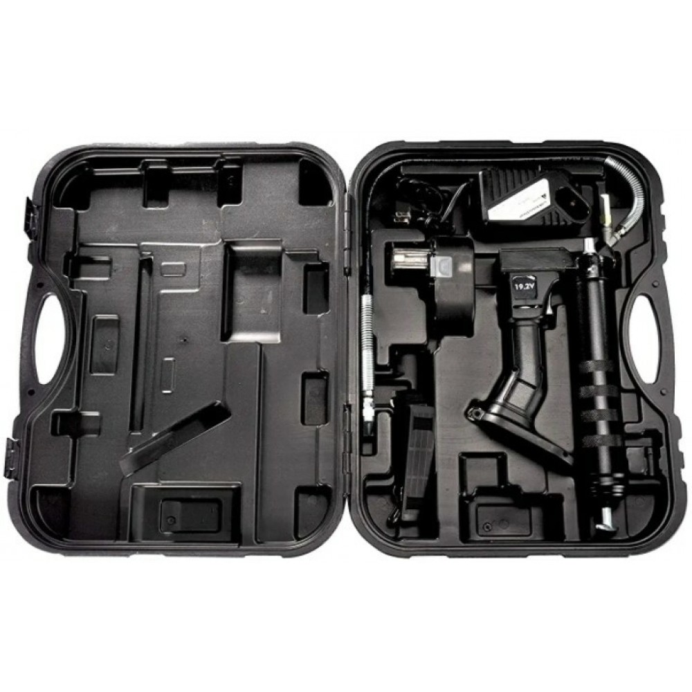 - Шприц; - 4-пелюсткова муфта (насадка) високого тиску; - шланг із запобіжною пружиною з обох кінців, яка запобігає його скручуванню; - ремінь на плече; - пластиковий кейс; - інструкція з експлуатації; - гарантійний талон