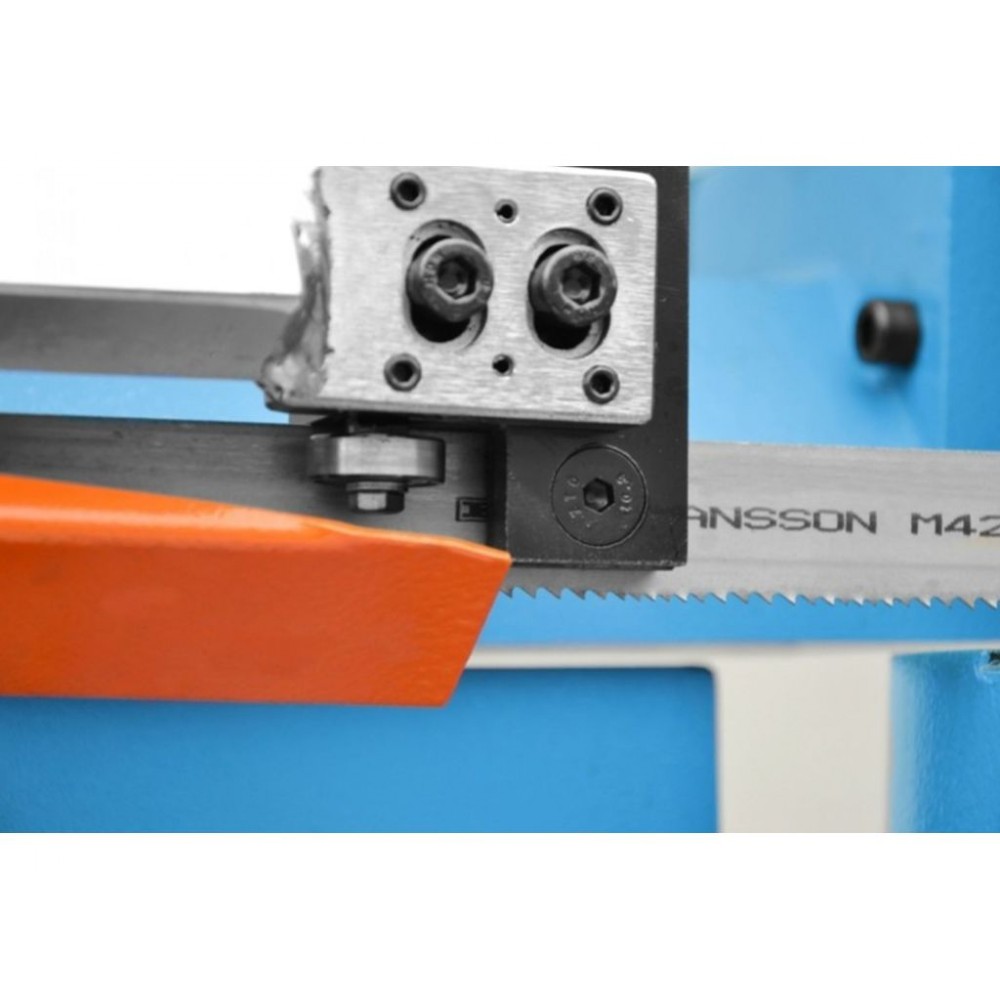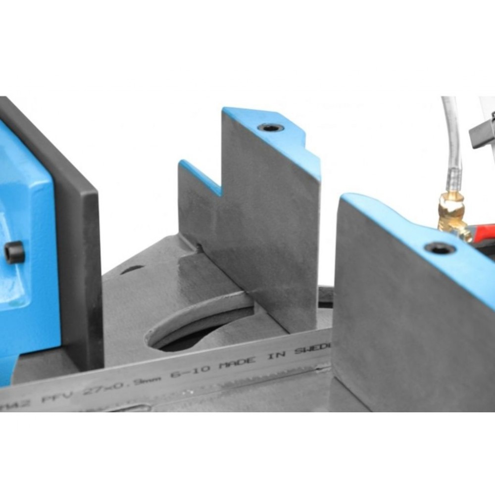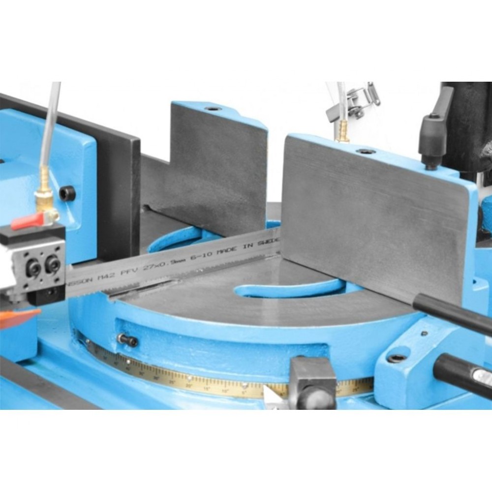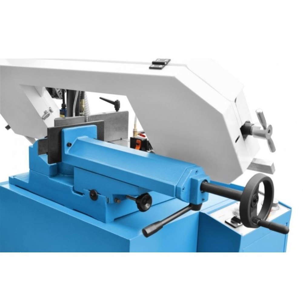 Прочная, надежная и современная полуавтоматическая ленточная пила по металлу с автоматическим подъемом и опусканием руки и гидравлическими тисками. Плечо ленточной пилы можно поворачивать в обе стороны от -45° до + 60°. Станок незаменим в любой слесарной мастерской. Пила идеально подходит для резки труб, профилей и твердых материалов.