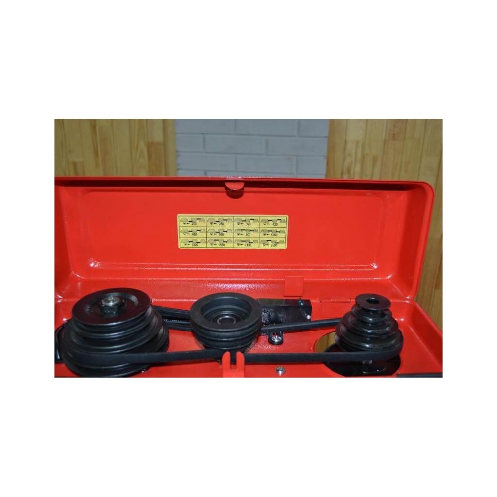 Редуктор має два східчастих п’ятиструмкових шківи для переустановлення ременя, що дозволяє вибрати оптимальну швидкість і забезпечити необхідний обертовий момент.