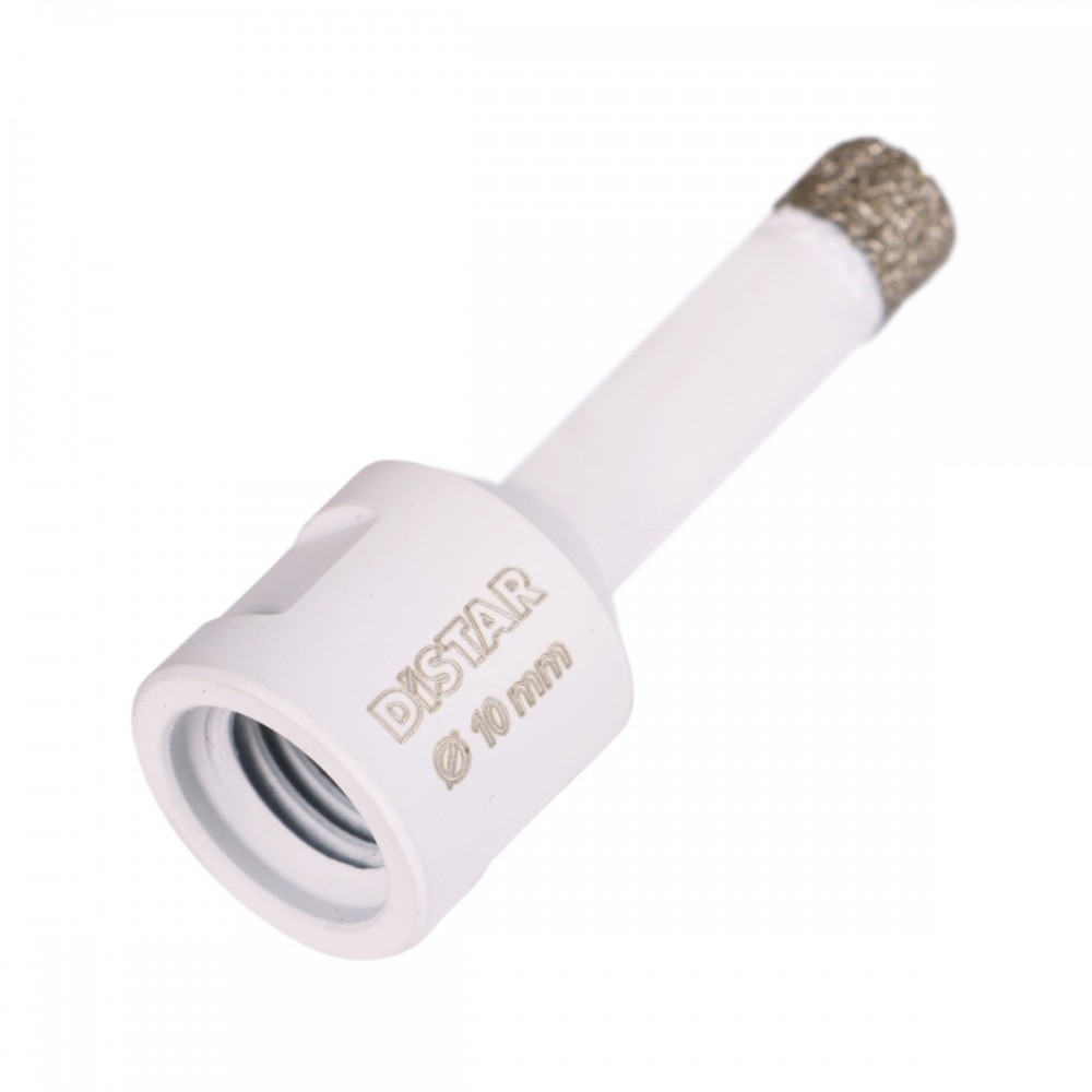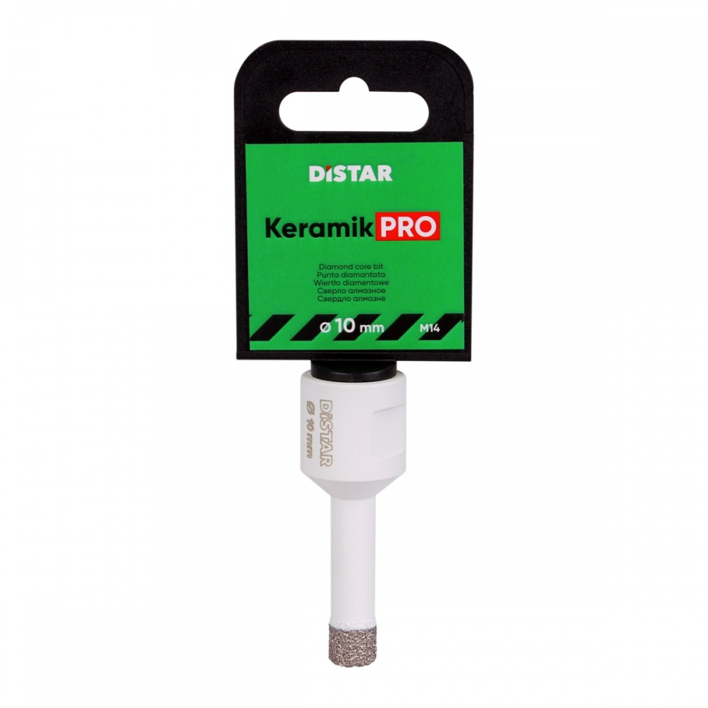 DDR M14 Keramik Pro Це PRO щвидкість! Щороку розширюється асортимент твердого, морозостійкого керамограніту, обробка якого ускладнюється. Для різання, свердління таких матеріалів потрібен швидкий інструмент. Вакуумні свердла Keramik Pro - це швидкісні свердла для будь-яких видів кераміки та керамограніту. Високопрочний алмаз, закріплений у твердій зв’язці, формує розвинені ріжучі мікрорезці, які ефективно проникають в керамічний матеріал. Середня швидкість свердління керамограніту 10 мм на КШМ складає 7 сек (5-15 сек в залежності від твердості матеріалу). Ресурс становить 20-70 отворів. Рекомендується встановлювати швидкість КШМ у діапазоні 8000-11 000 об / хв. Свердління проводити у сухих режимах, погойдуючими рухами, уникаючи тиску на свердло. Виготовляється в діапазоні діаметрів 6-70 мм. Застосовується на КШМ 125 і 115 мм.