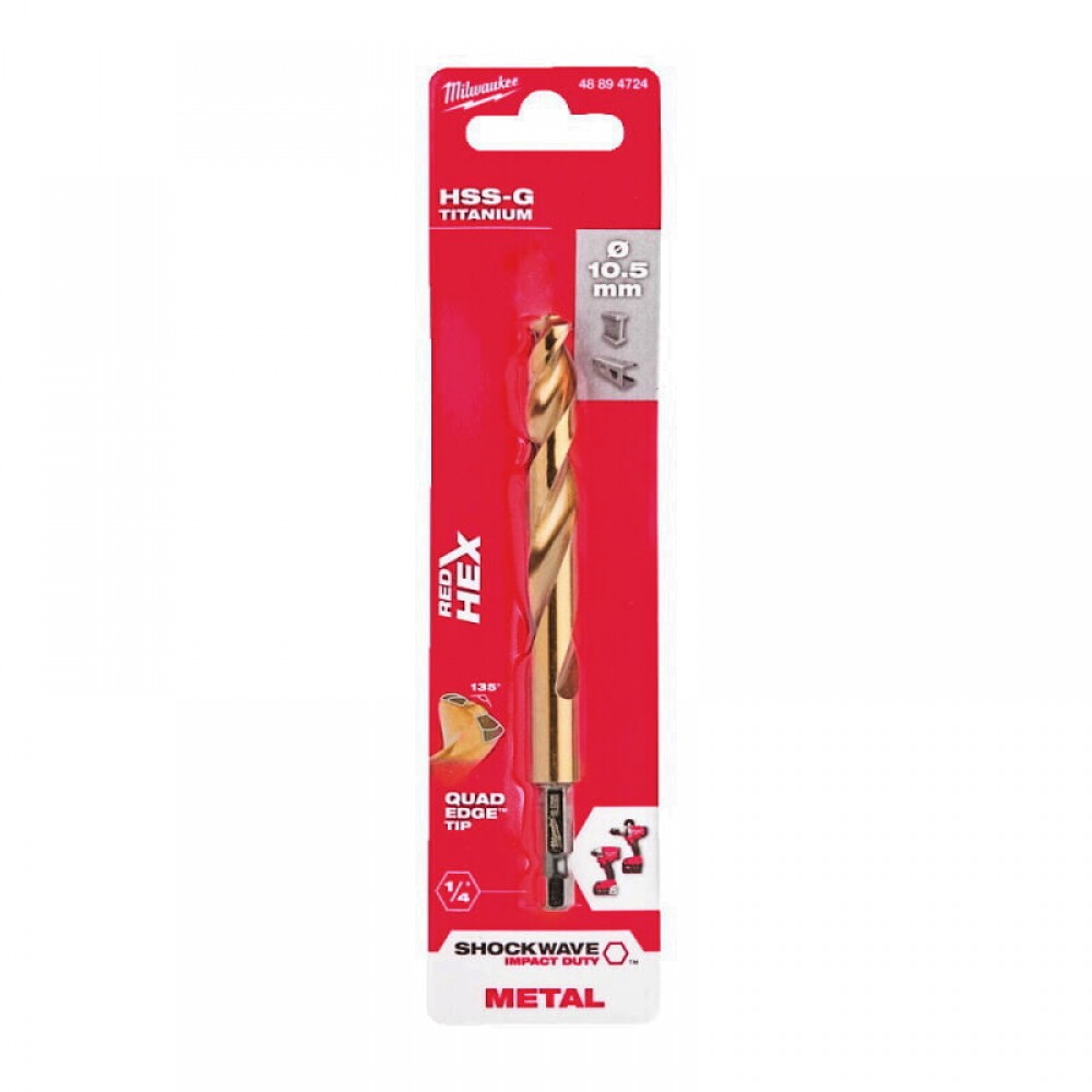 Свердло по металу RedHEX HSS-G TiN MILWAUKEE, діаметр 10,5мм