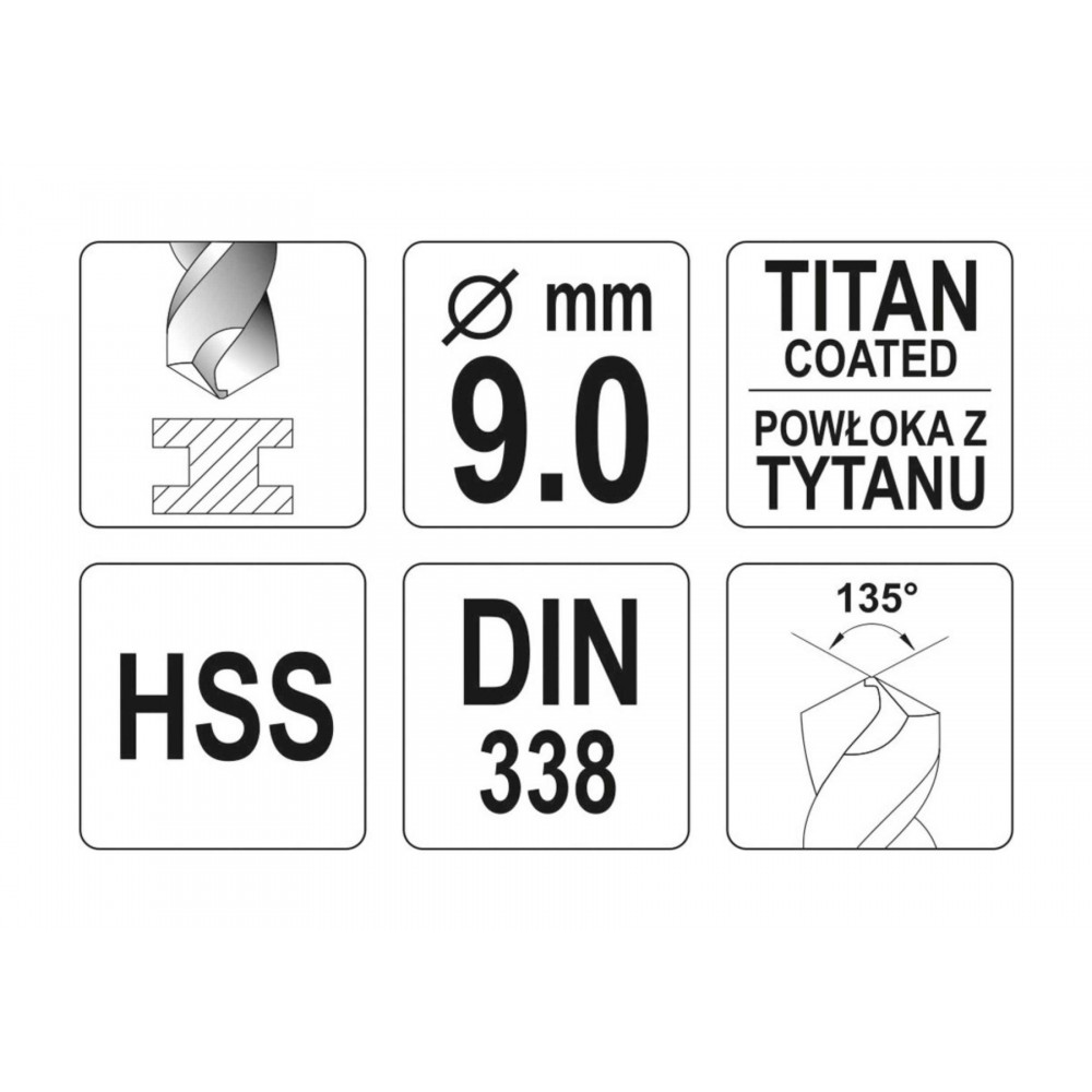 Свердло по металу титанове YATO 9 x 125/81 мм HSS-TIN