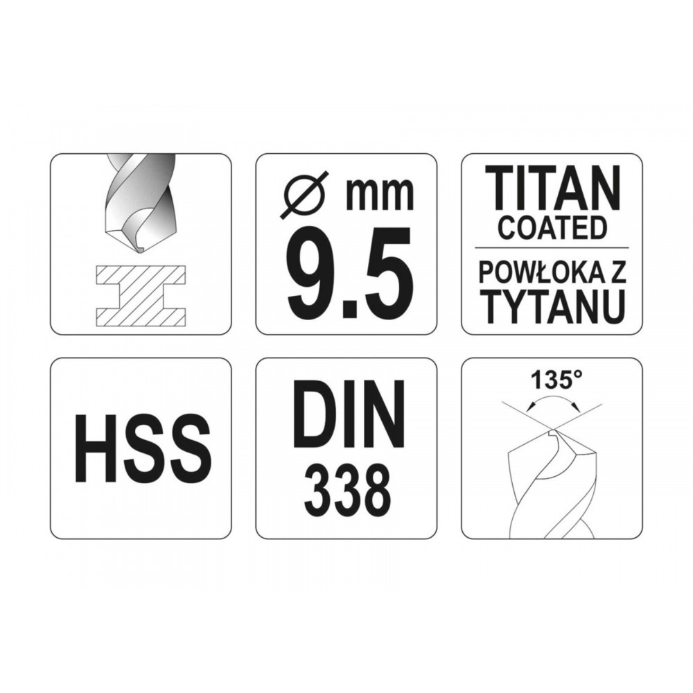 Свердло по металу титанове YATO 9.5 x 125/81 мм HSS-TIN