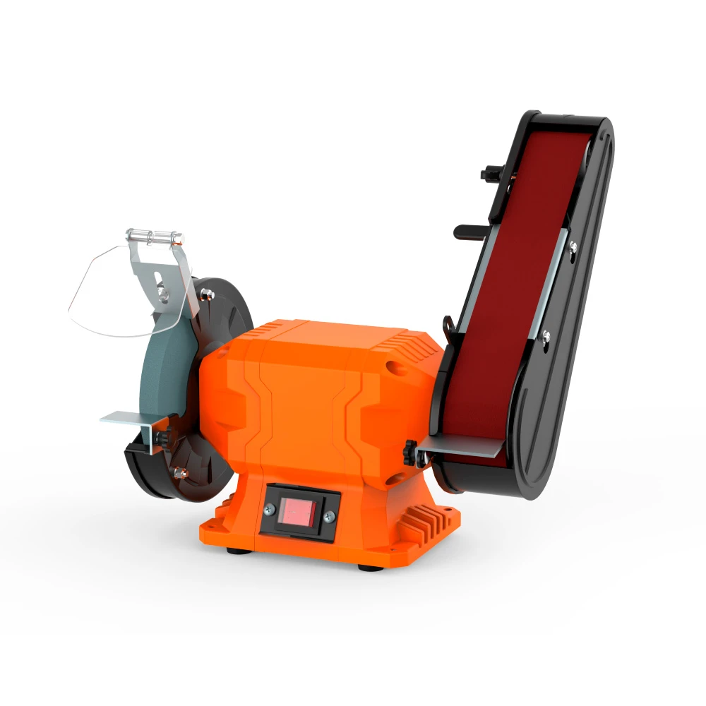 GTM NBG150/50F- електричний інструмент комбінованої конструкції: круг та шліфувальна стрічка для заточування і шліфування виробів з матеріалів різної щільності. Може використовуватися для сухого заточування ножів, стамесок, а також інших інструментів. Верстат живиться від побутової електромережі 220 В і споживає всього 250 Вт.