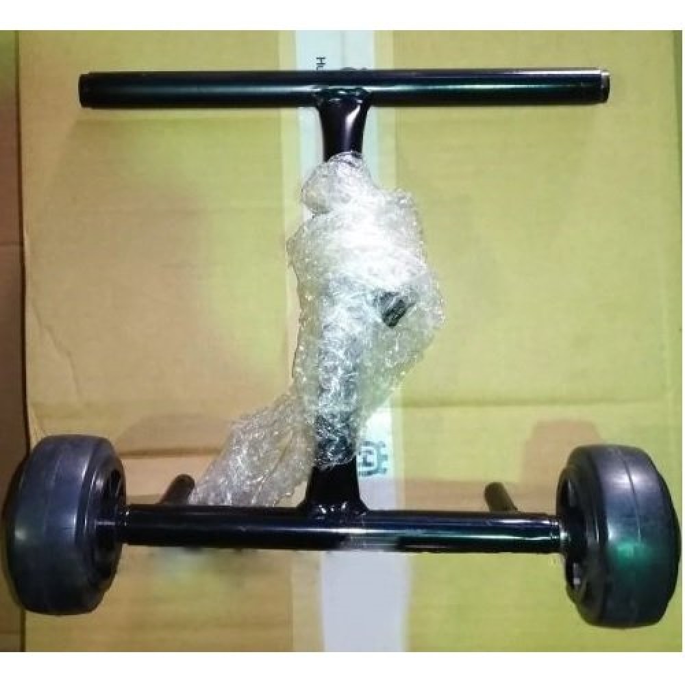 Пристрій виготовлено з міцної сталі, має покриття від корозії. Колеса виконані з поліуретану, мають високу зносостійкість. Колір чорний.